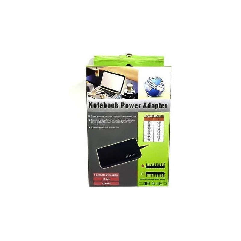 Este cargador Universal para Notebook le ofrece la posibilidad de ser usado en diferentes dispositivos que usen voltajes desde 12v hasta 24v, ya que trae distintos tipos de conectores intercambiables adaptándose a cualquier tipo de producto electrónico, con un voltaje regulable de 12 voltios hasta 24 con un Amperaje de 4 y 4.5.