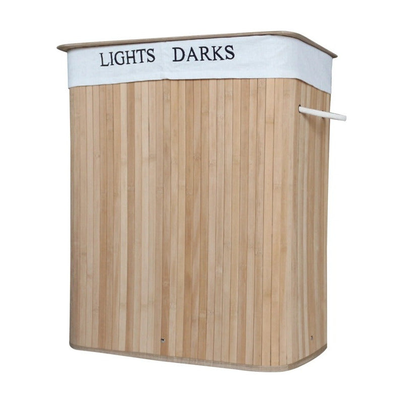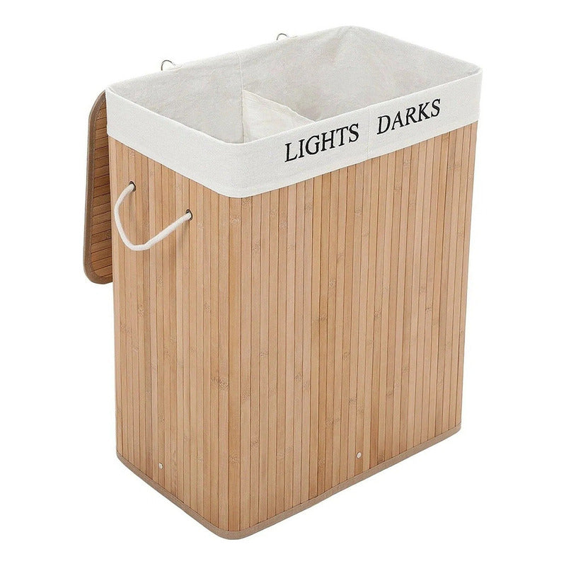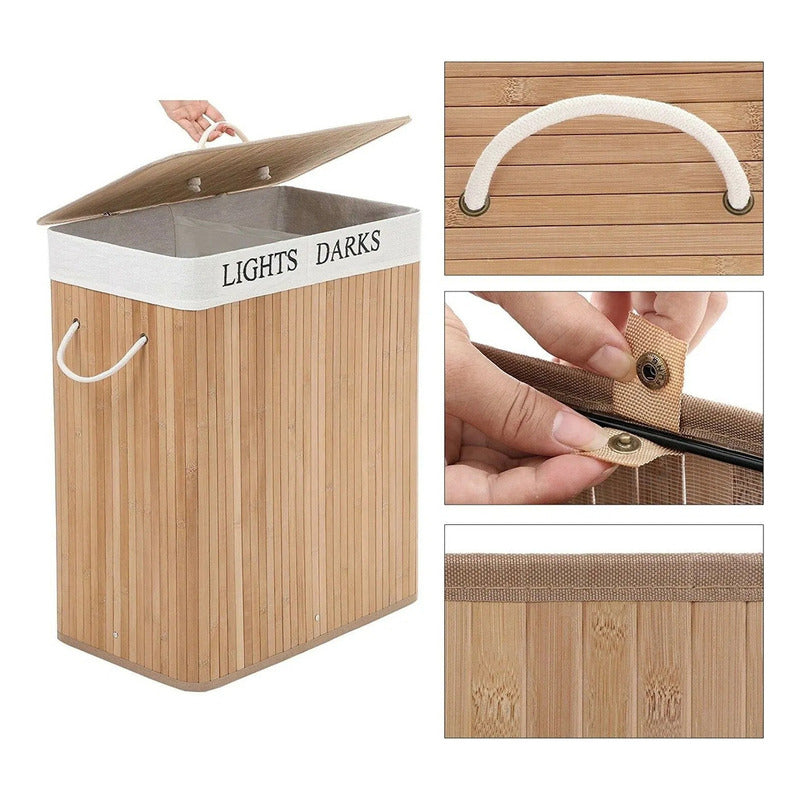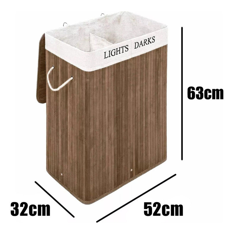 Cesto Canasto Para Ropa De Bambú Doble 65cm Grande Con Tapa