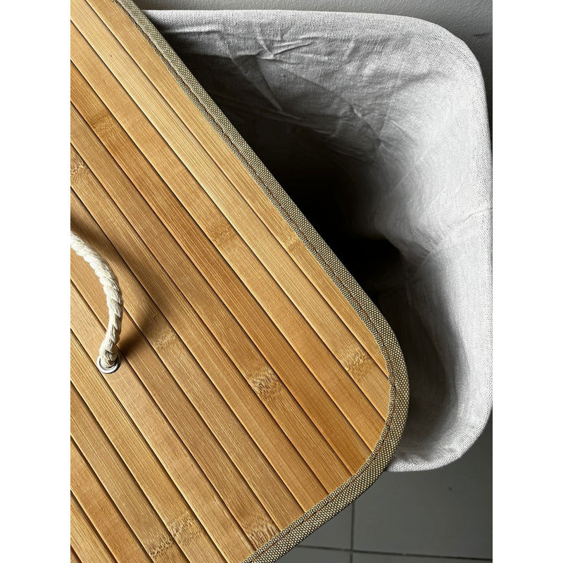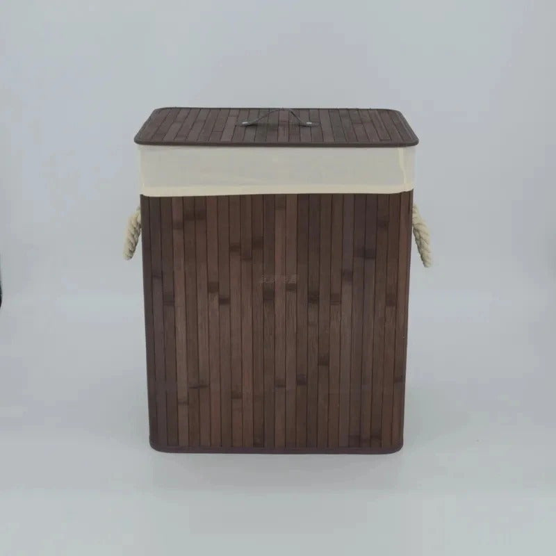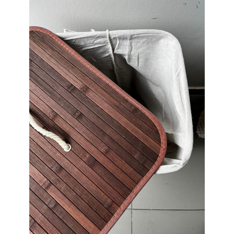 Cesta de ropa sucia de bambu de alta calidad el cual viene en tre diferentes colores en bambu oscuro y bambu claro y bambu negro, tambien incluye una tapa de madera, de facil armado.
