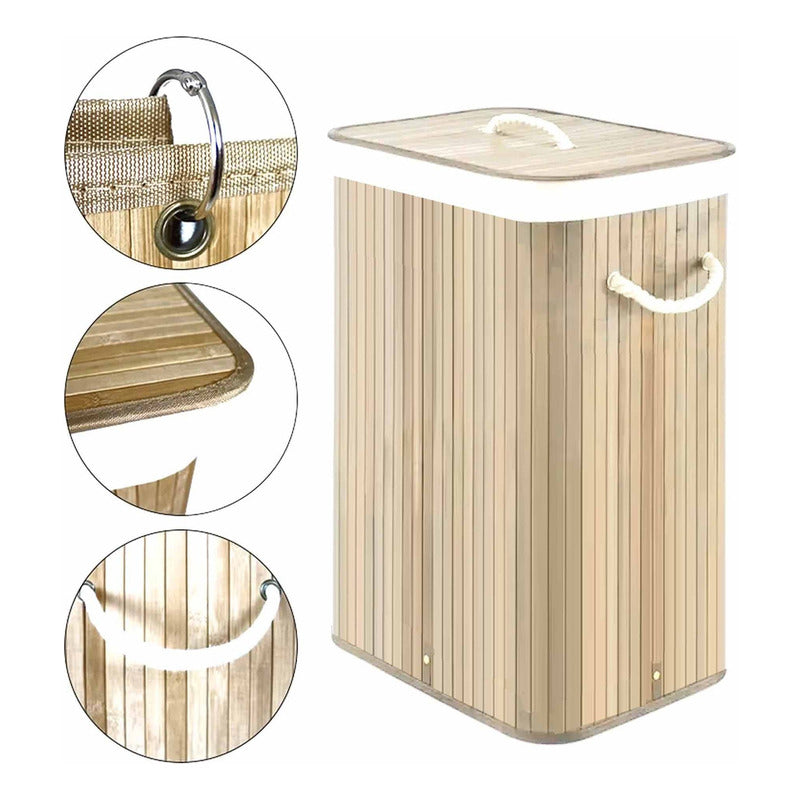 Cesto Canasto Ropa Sucia Bambu Whitmor 60 Cm Con Tapa Y Asas