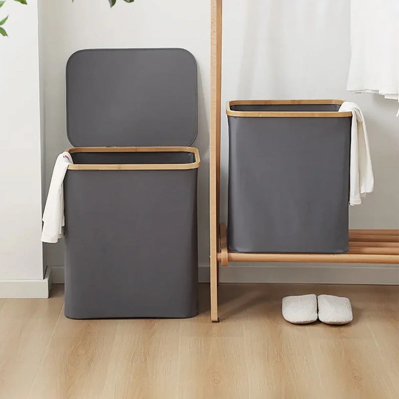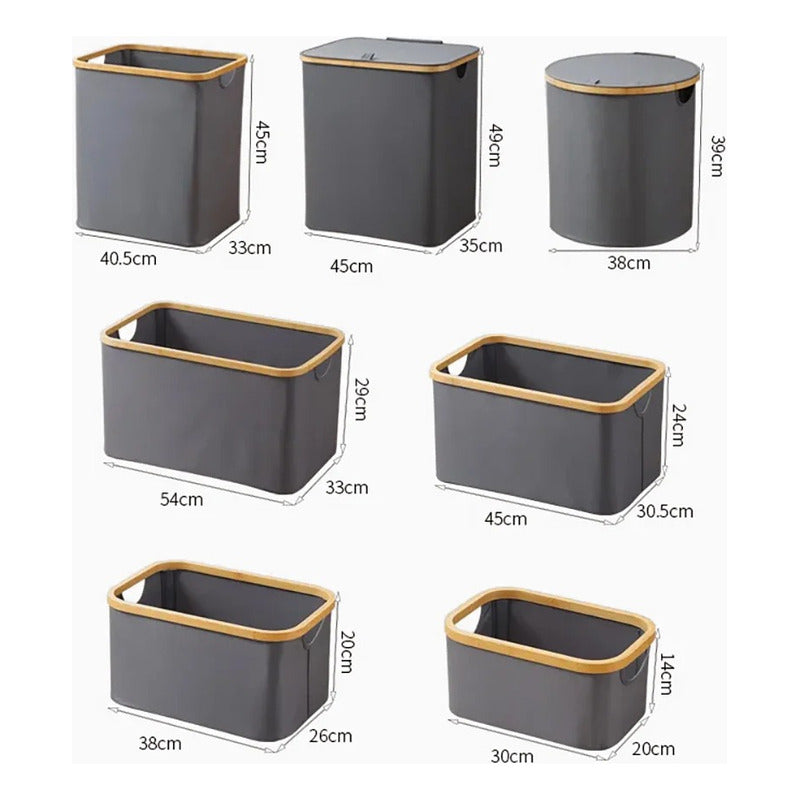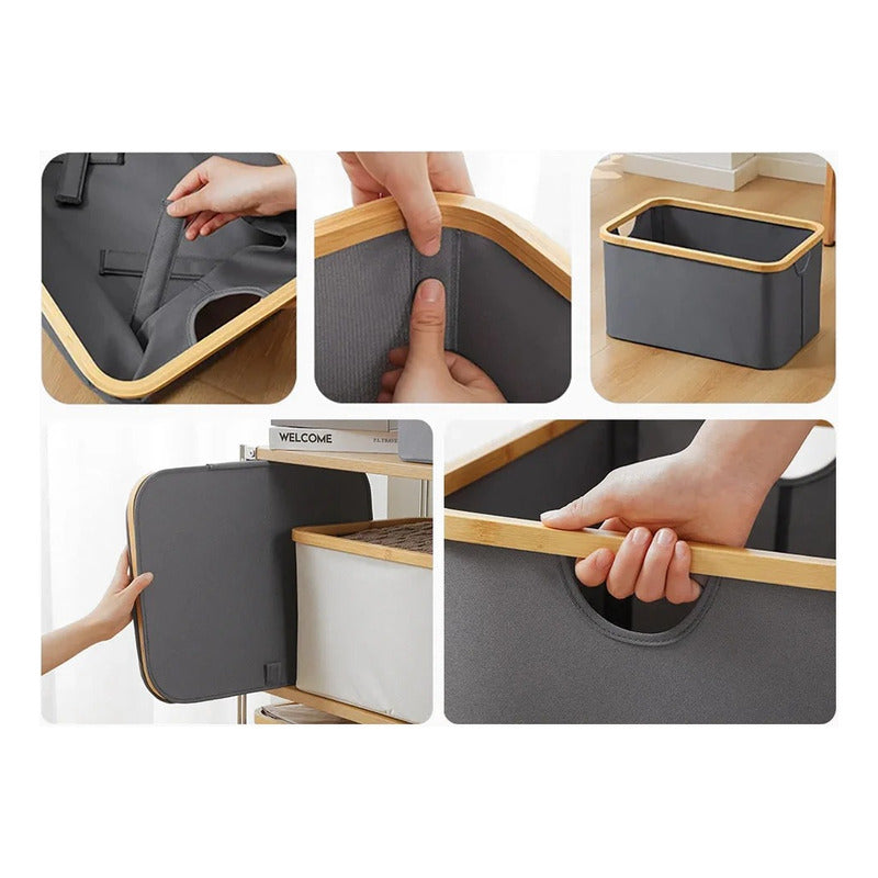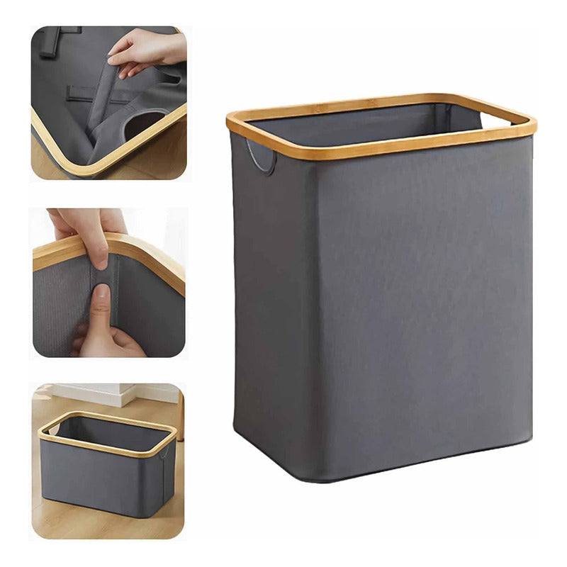 Cesto Canasto Ropa Sucia Plegable Borde Madera Con Tapa Cuadrada