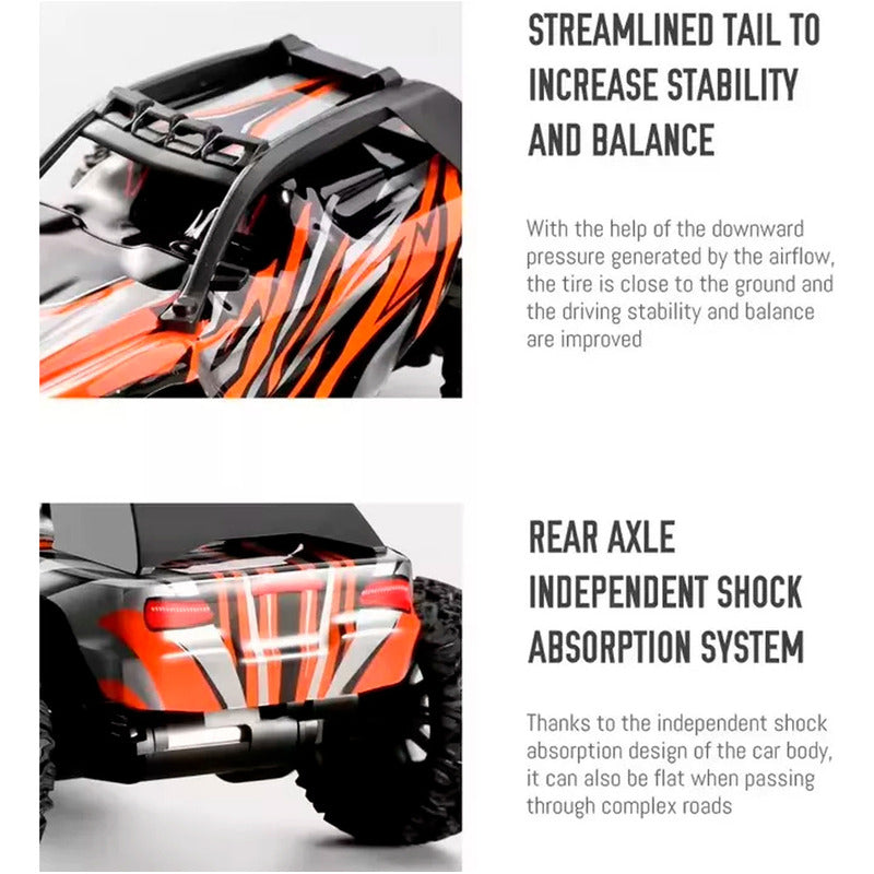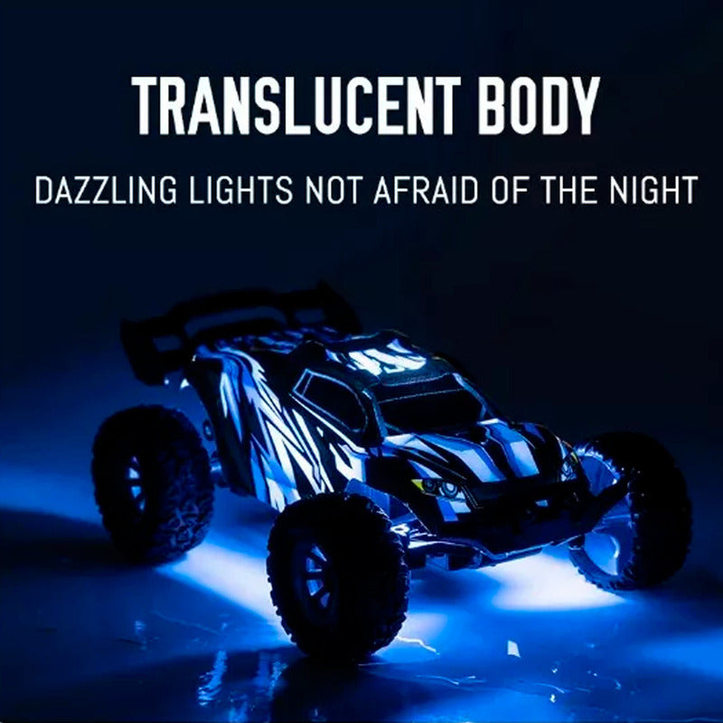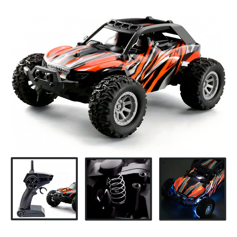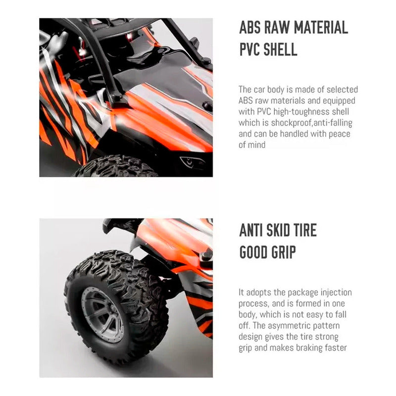 5. Diseño y Construcción: La carrocería está hecha de materiales duraderos como ABS y PVC, lo que le permite soportar los impactos y condiciones difíciles durante las carreras todoterreno. Además, cuenta con luces LED para mejorar la visibilidad y el atractivo visual