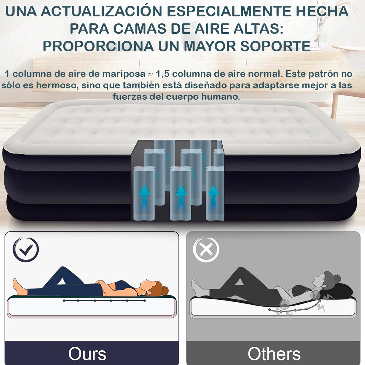Colchon Cama Inflable 2 Plazas Electrico 203x152x45 Cm