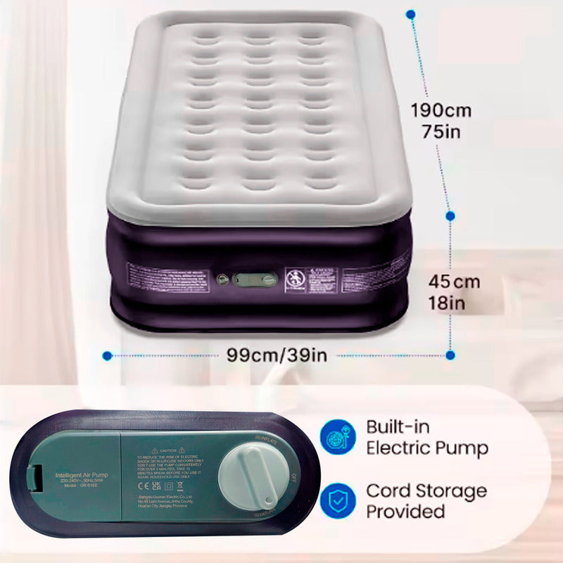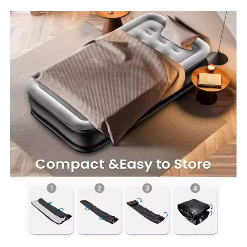 Colchon Cama Inflable Electrico Camping Glamping 1 plaza 45cm