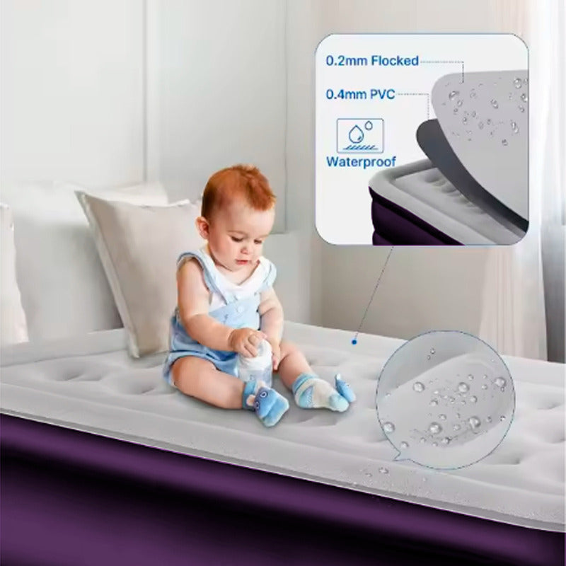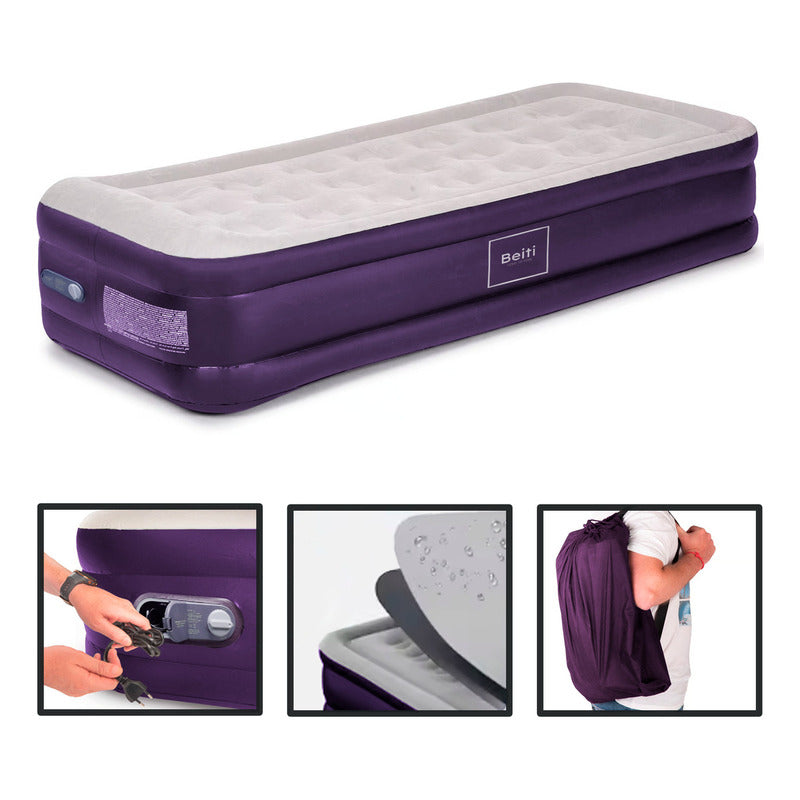 La clave para un sueño reparador está en el colchón. Un aislante del frío, la humedad y que permitirá que tu cuerpo descanse en un material cómodo. Perfecto para los invitados en tu casa, tus aventuras en la naturaleza o esas vacaciones donde necesitamos una cama extra. El Colchón Cama Inflable Single Beiti, tiene un tamaño de dos plazas, una altura de cama elevada de 47 centímetros y un ancho de 97 centímetros. Ideal para parejas o familias que busquen comodidad a la hora de dormir, siendo capaz de soportar un peso de hasta 150 kilos. Para mayor suavidad, cuenta con una cubierta superior afelpada y un marco de soporte circundante superior e inferior que le otorga mayor estabilidad. Vinilo de alta resistencia y durabilidad, el Colchón Cama Inflable Queen viene con un inflador eléctrico incorporado para inflado y desinflado (220 - 240 volt), además de su bolso de transporte para que puedas llevarlo e instalarlo donde quieras.