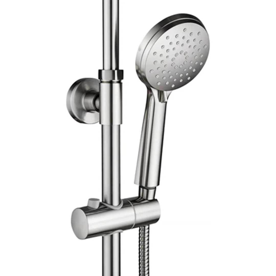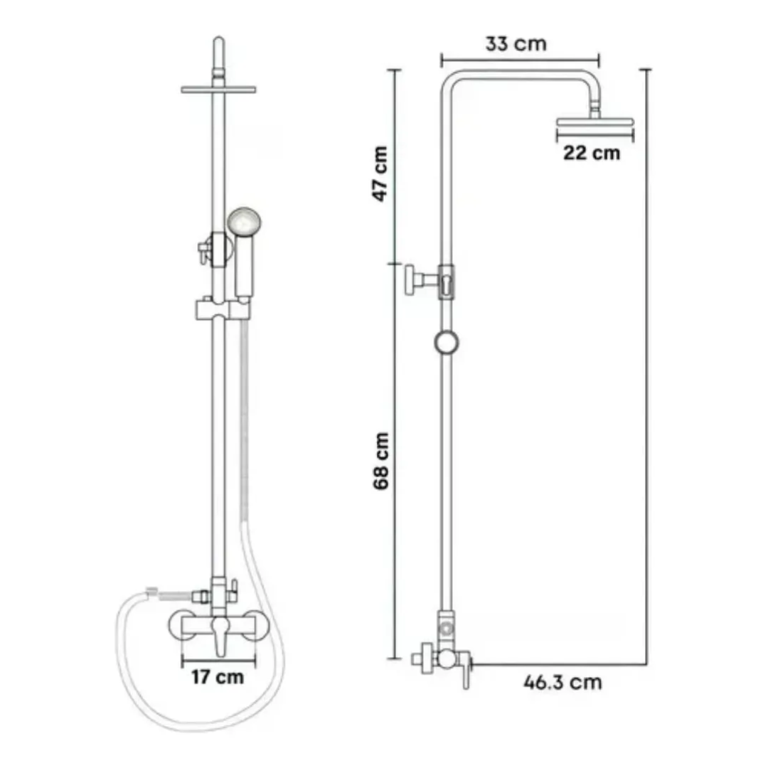 Fabricada con materiales de alta calidad como el acero y el ABS, esta columna de ducha garantiza durabilidad y resistencia. Además, su diseño redondo le da un toque moderno y minimalista a tu baño.