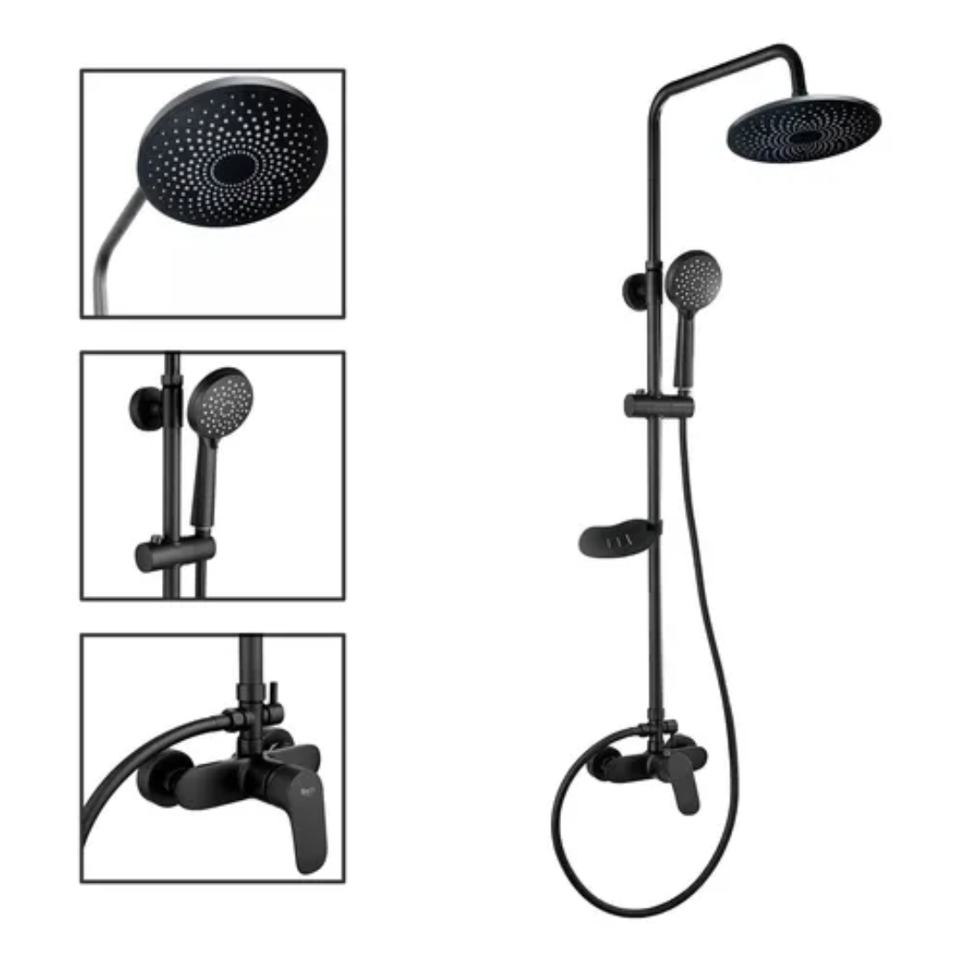 La Columna de Ducha Monomando Grifería Exterior Redonda Marca Beiti, es el complemento perfecto para tu baño. Con un elegante acabado mate en color negro, esta columna de ducha no solo brinda funcionalidad, sino también estilo y sofisticación.