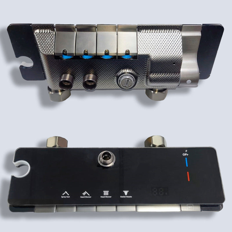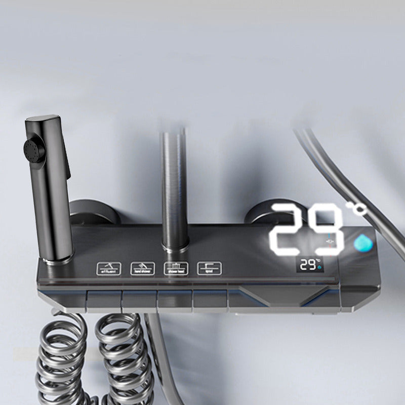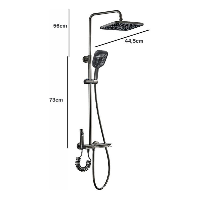 La Columna de Ducha Moderna 4 Funciones Llave Tipo Piano Bidet de Beiti es la elección perfecta para quienes buscan un diseño contemporáneo y funcionalidad en su baño. Con un elegante acabado en grafito y un color gris oscuro, esta columna se integra a la perfección en cualquier estilo decorativo, aportando un toque de sofisticación.