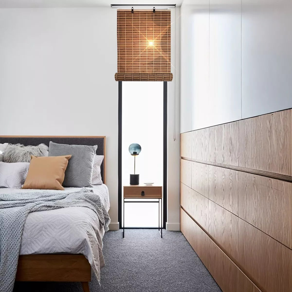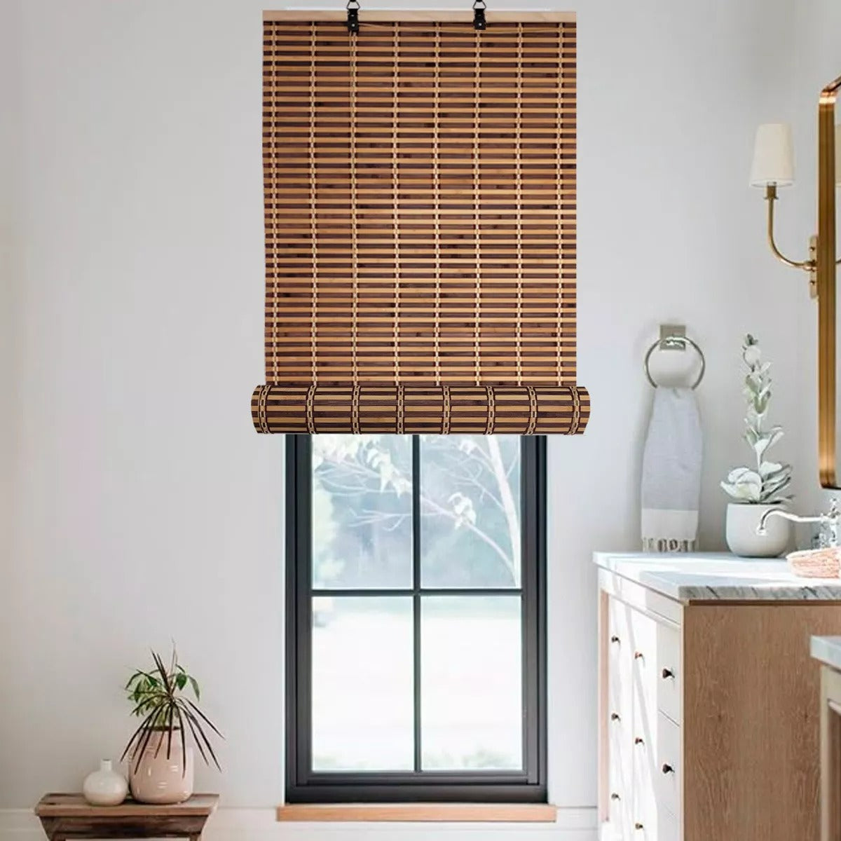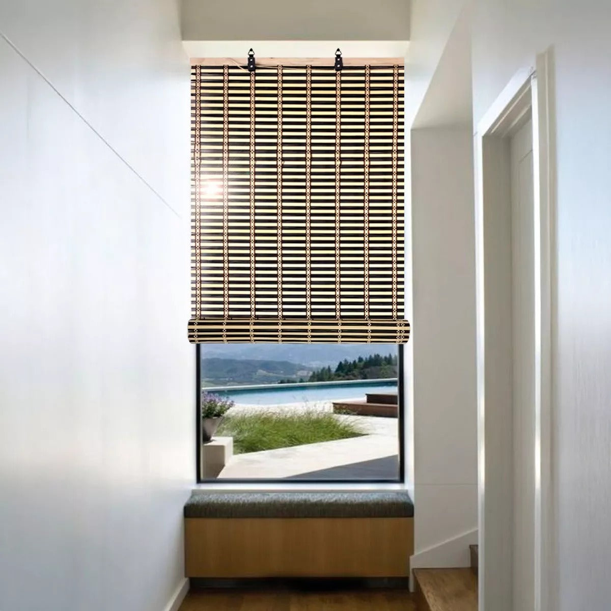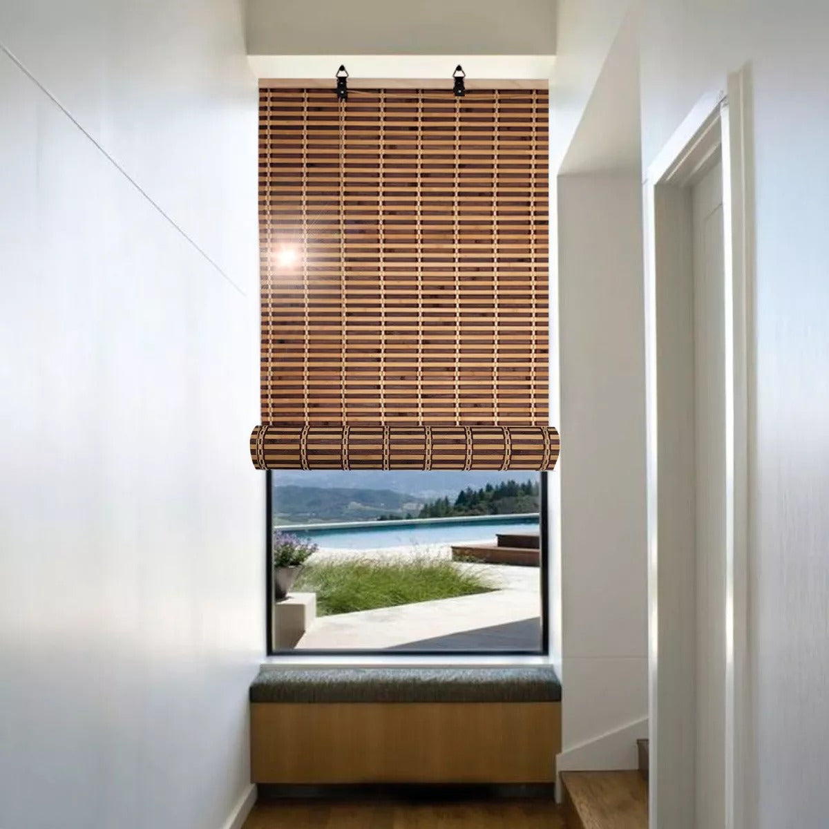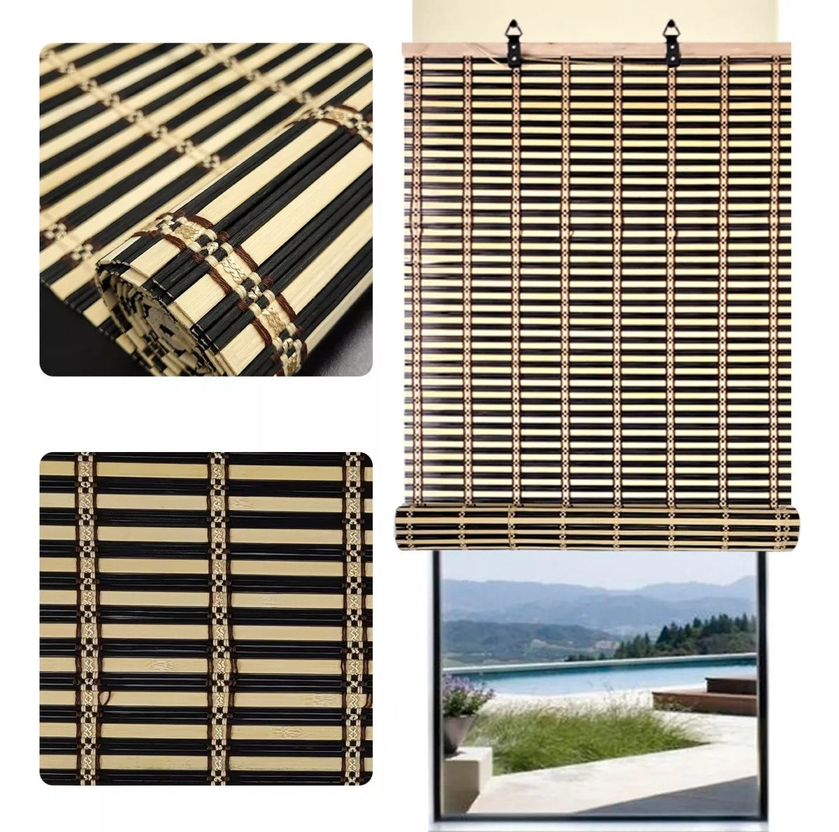 Ideal para ventanas pequeñas o medianas. Diseño elegante: Su acabado natural aporta un estilo rústico y contemporáneo a la vez. Fácil instalación: Incluye accesorios para montarla rápidamente en pared o techo. Control de luz: Filtra suavemente la luz solar para crear ambientes relajantes. Ventajas: Resistente y fácil de limpiar. Versátil: perfecta para salones, dormitorios, oficinas y más. Ayuda a mantener la temperatura interior al reducir la entrada directa de calor.