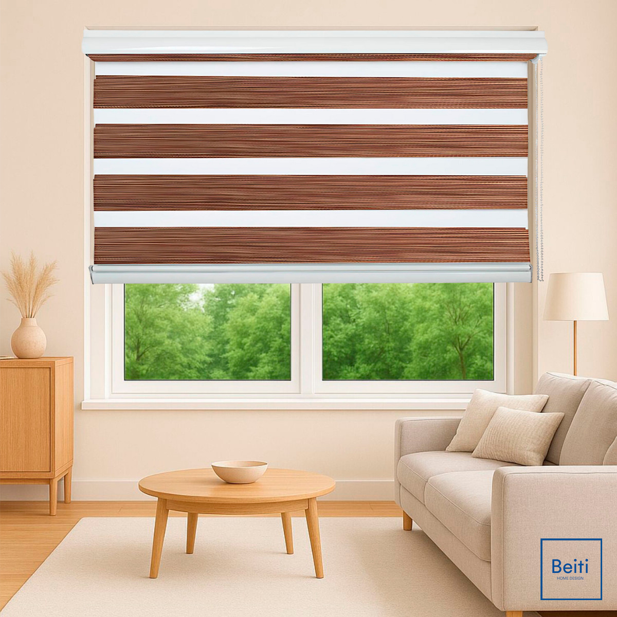 La Cortina Roller Zebra Duo de la marca Beiti en 3 sofisticados colores Gris Jaspeado, Café Jaspeado y Café Oscuro Jaspeado representa la perfecta fusión entre diseño contemporáneo y tecnología de control lumínico. Su elegante tonalidad jaspeada aporta un toque de distinción que complementa cualquier estilo decorativo, desde ambientes modernos hasta espacios más clásicos.