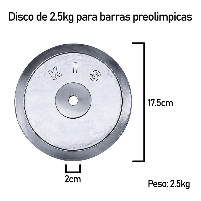 Disco Preolímpico 2.5 Kg Cromo Pesas Profesional Mancuernas