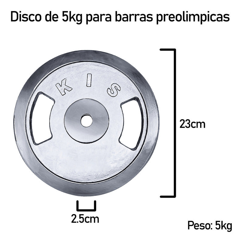 Disco Preolímpico 5 Kg Cromado Pesas Profesional Con Agarres