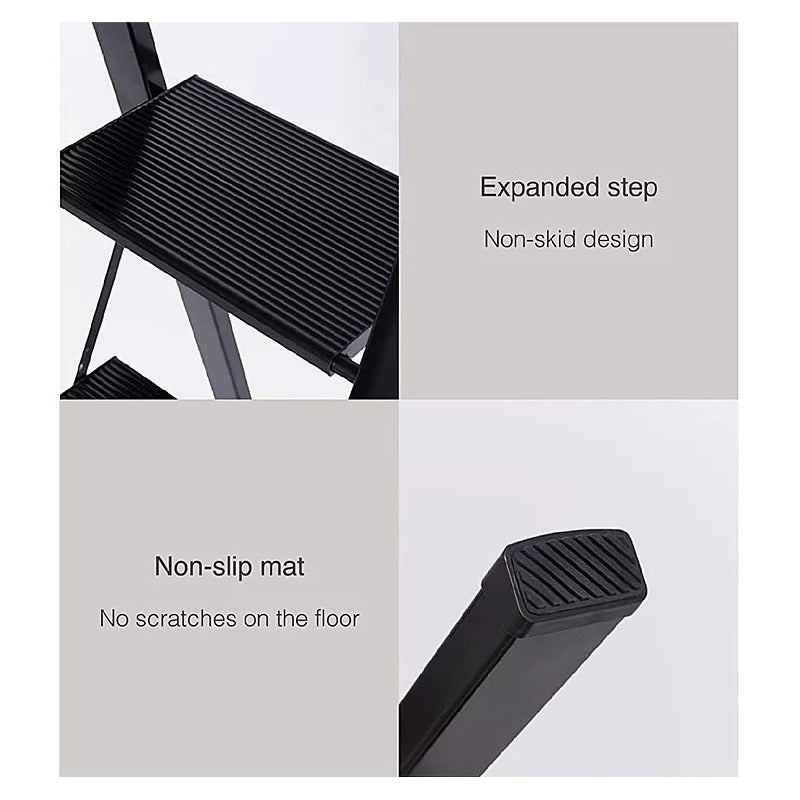 Pies de apoyo antideslizantes: las partes inferiores de los 4 pies están hechas de materiales TPR suaves, lo que hace que esta escalera ligera sea más estable.