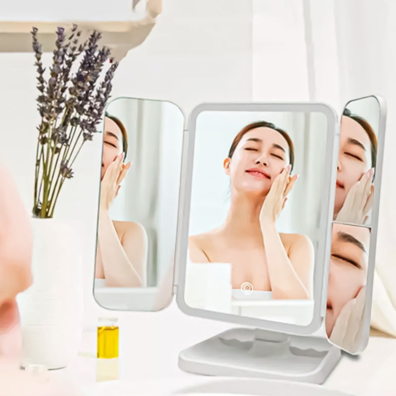 Espejo Maquillaje Profesional 22 Led Aumento Plegable Grande