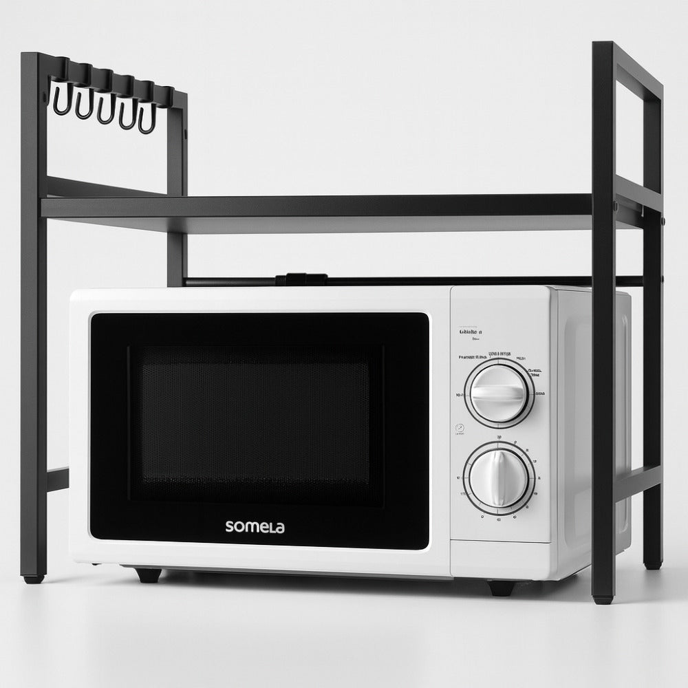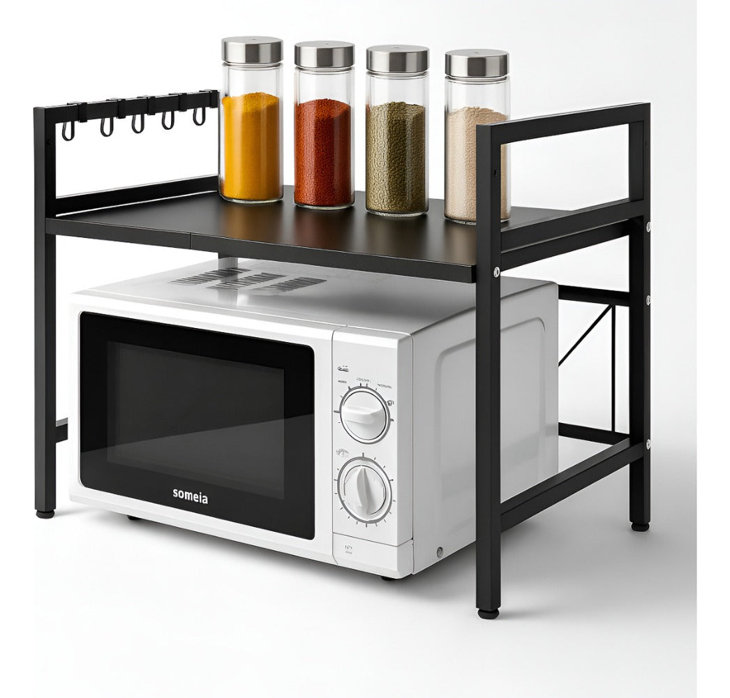 Aprovecha mejor tu espacio con este soporte ajustable para microondas. Su diseño resistente de acero y sus medidas prácticas lo convierten en la solución ideal para organizar tu cocina, mantener todo en orden y liberar superficie de trabajo. Perfecto para cocinas modernas que buscan practicidad y estilo en un solo producto.