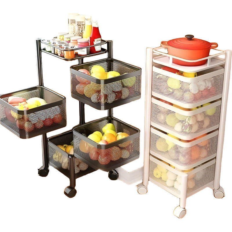 Estante de cocina giratorio con ruedas, Este practico estante organizador te permite organizar tus vegetales y frutas, entre otras cosas mas en tu cocina, ocupa poco espacio y es fácil de armar.