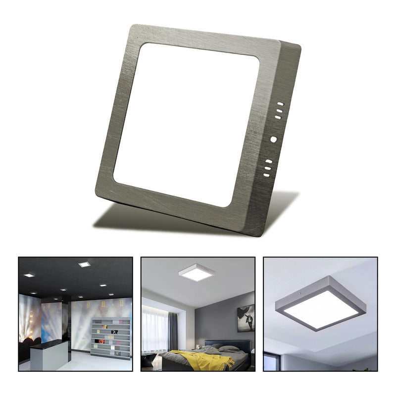 Foco Plafon Led Cuadrado Sobrepuesto 18w Luz Fria Niquel
