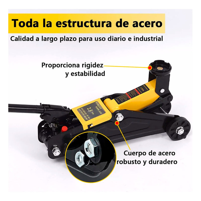 Gata hidráulica, tipo caimán, 2.5 toneladas, perfil bajo, autos, camiones, SUV, potencia, capacidad, diseño compacto, portátil, seguridad, válvula de seguridad, soporte de acero resistente