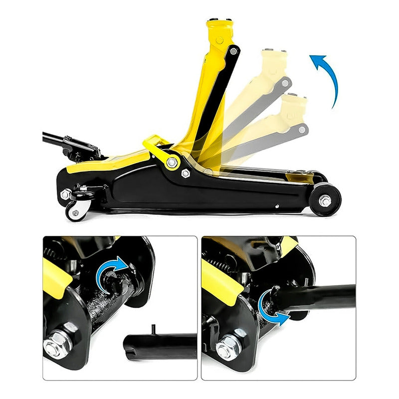 Esta gata hidráulica es una herramienta esencial para cualquier persona que necesite levantar su vehículo para reparaciones o mantenimiento. Con una capacidad de elevación de 2.5 toneladas y un diseño de perfil bajo, esta gata es perfecta para usar en autos, camiones y SUV con poca altura.