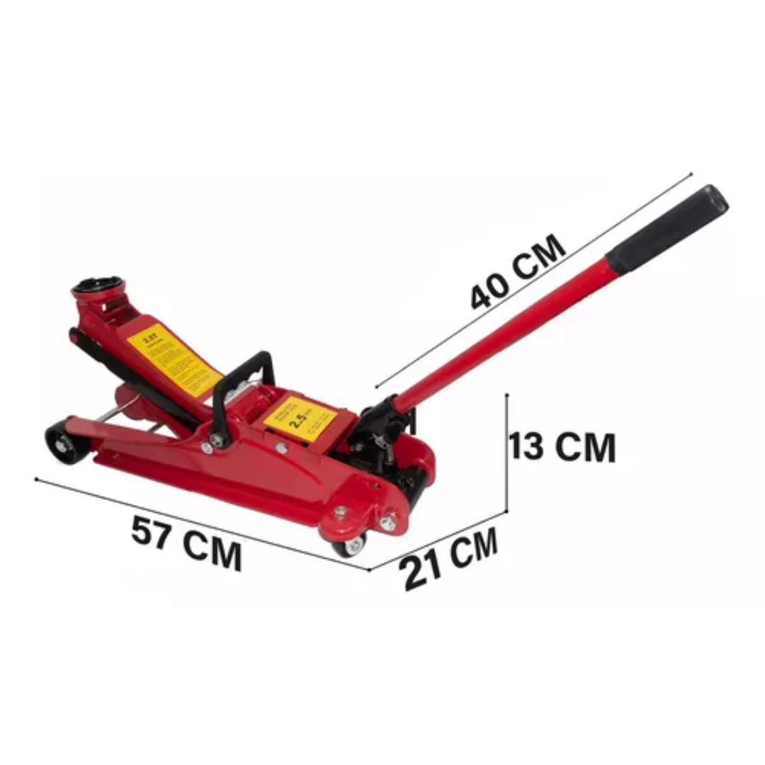 Con la gata hidráulica tipo caimán de 2.5 toneladas (perfil bajo), puedes realizar reparaciones y mantenimiento en tu vehículo con confianza y seguridad.