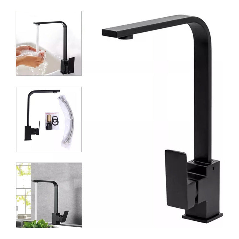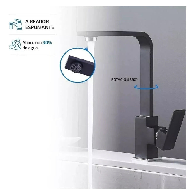 Grifo Llave Lavaplatos Monomando Moderno De Lujo Acero Negro