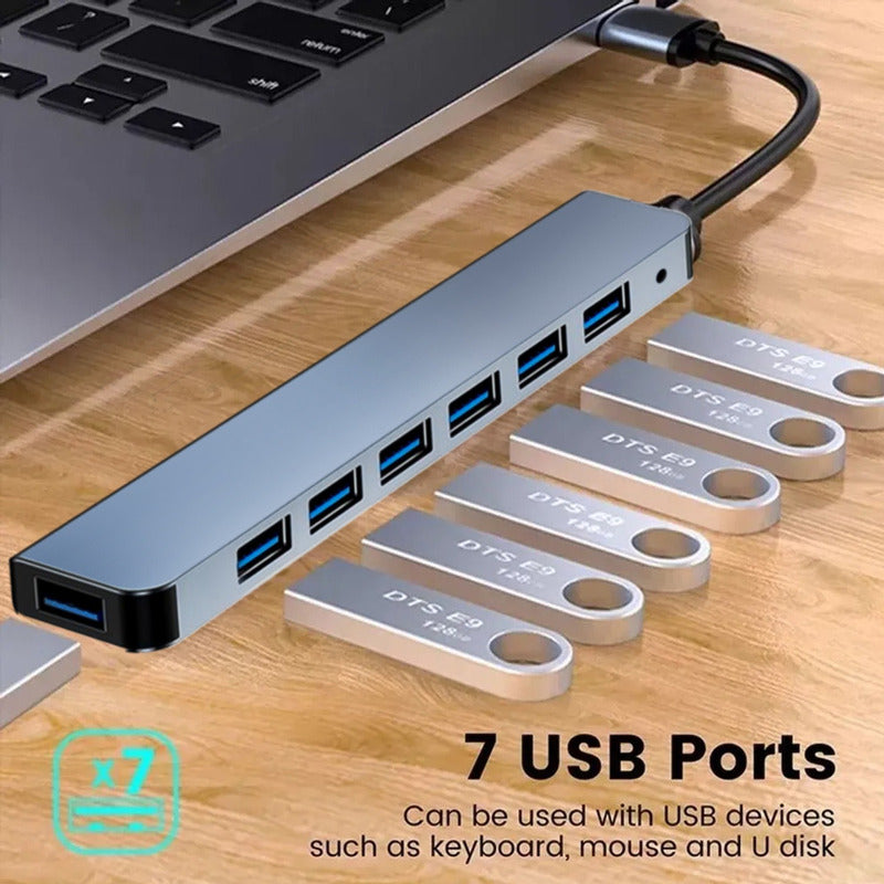 Hub Usb 7 Puertos 3.0 Tipo C Alta Velocidad 5gbps Energizado