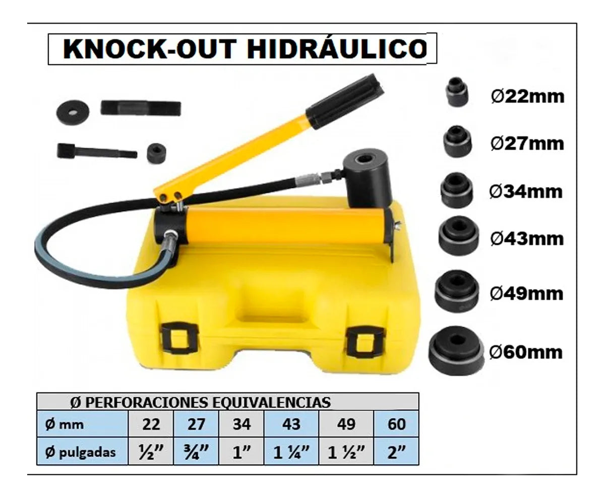 - 6 Punzones : 22mm–27mm–34mm–43mm–49mm–60mm.