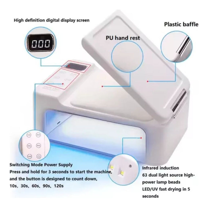Lampara De Uñas Secadora Led De 350w Tactil Con Posa Mano