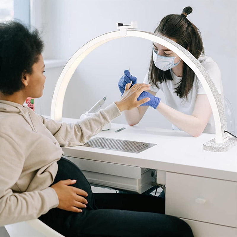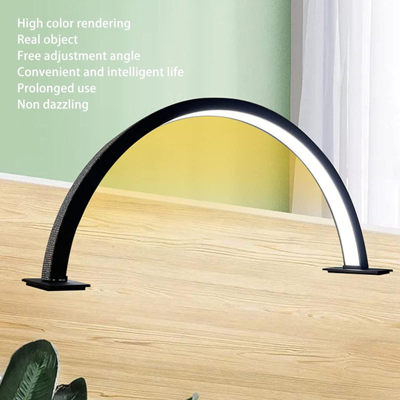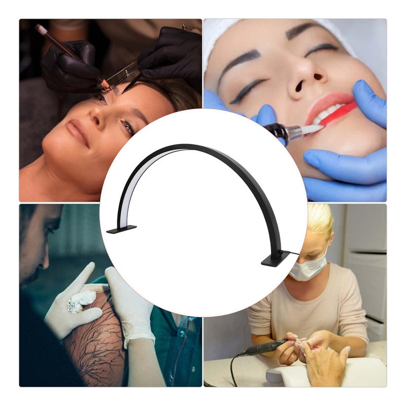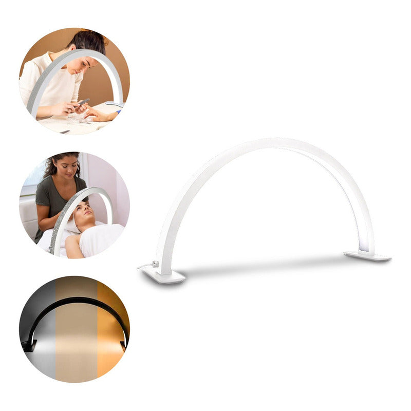 Lámpara de arco media luna para mesa con un diseño elegante y contemporáneo, es la herramienta ideal para cualquier salon de belleza, manicure, estudio de tatuaje, entre otros trabajos, brindando una excelente iluminacion de hasta 180° para tener una mejor vision en trabajos de precision.