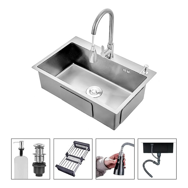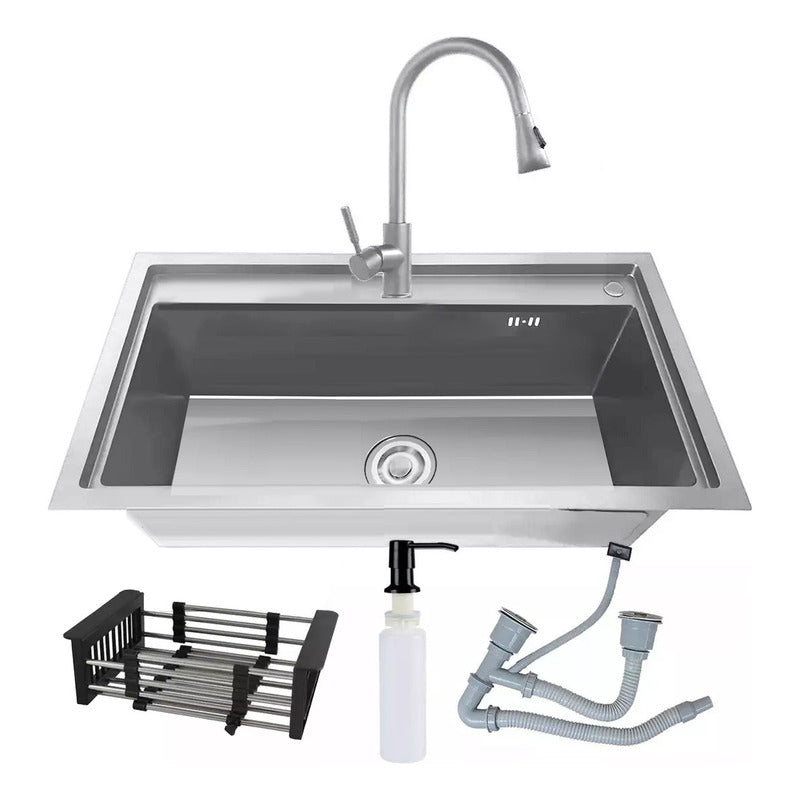 Lavaplatos 68x45cm De Acero Con Llave Dual Full Accesorios C