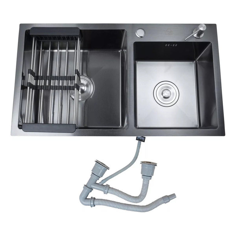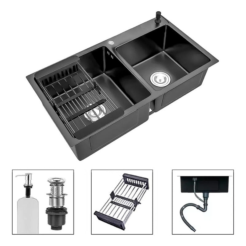 Lavaplato doble de 78cm x 43cm Marca Beiti. Es de acero inoxidable 201 por lo que el producto se mantiene en perfecto estado por años. Fabricado en acero inoxidable 201 que aporta rigidez y la calidad necesaria para una cocina de lujo, con un acabado cepillado.