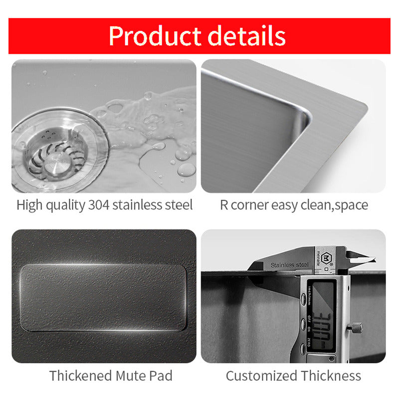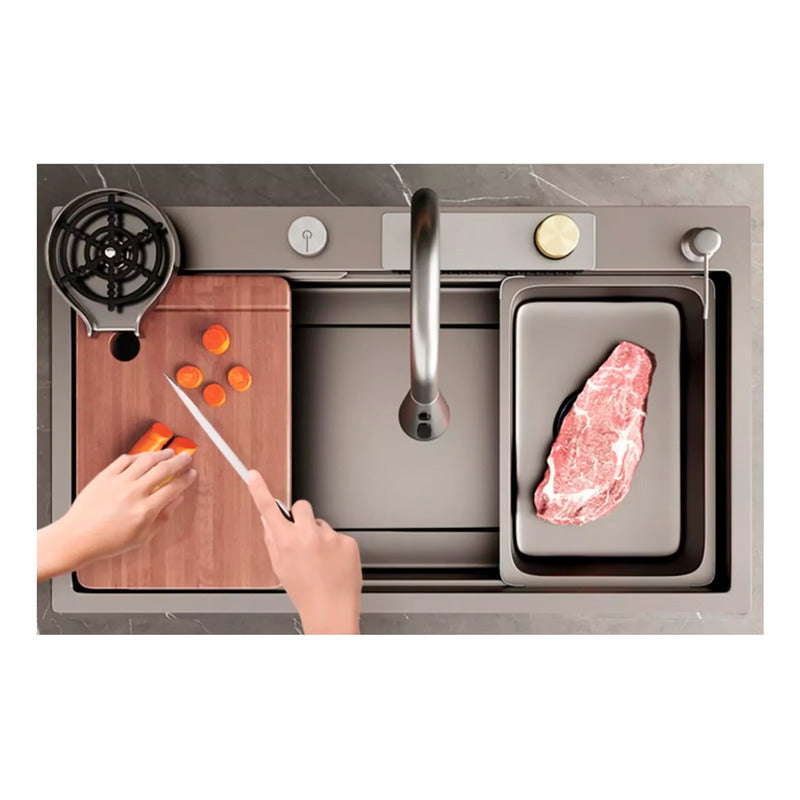 Material Premium: Fabricado en acero inoxidable de alta calidad, este combo garantiza durabilidad y resistencia a la corrosión. Su acabado pulido aporta elegancia a tu cocina y facilita la limpieza diaria. Este combo incluye una tabla de cocina para facilitar tus preparaciones, una base de lavaplatos para una instalación firme, y 2 mini lavaplatos con desagüe para un espacio de trabajo más versátil.