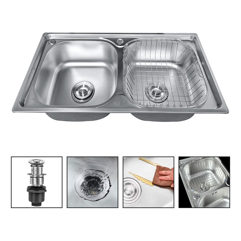 Lavaplatos Clasico Doble 78x42 Sobrepuesto Acero Inoxidable