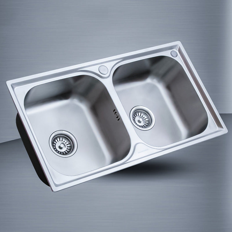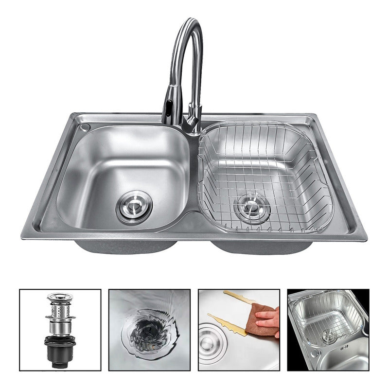 Lavaplatos Doble 78x43cm Con Llave Sobrecubierta Acero Inoxidable