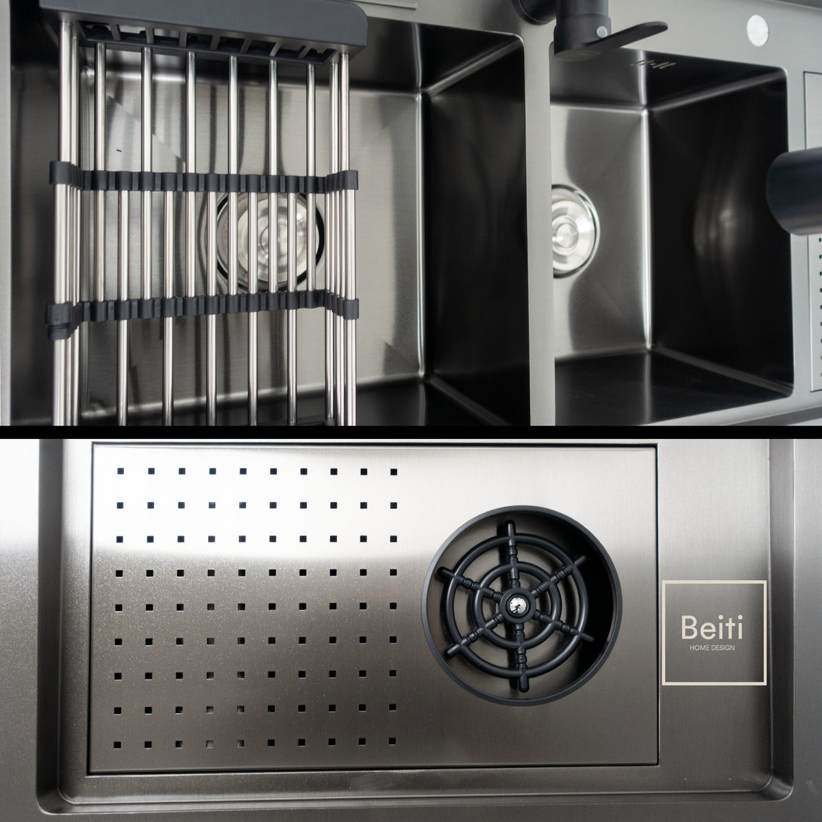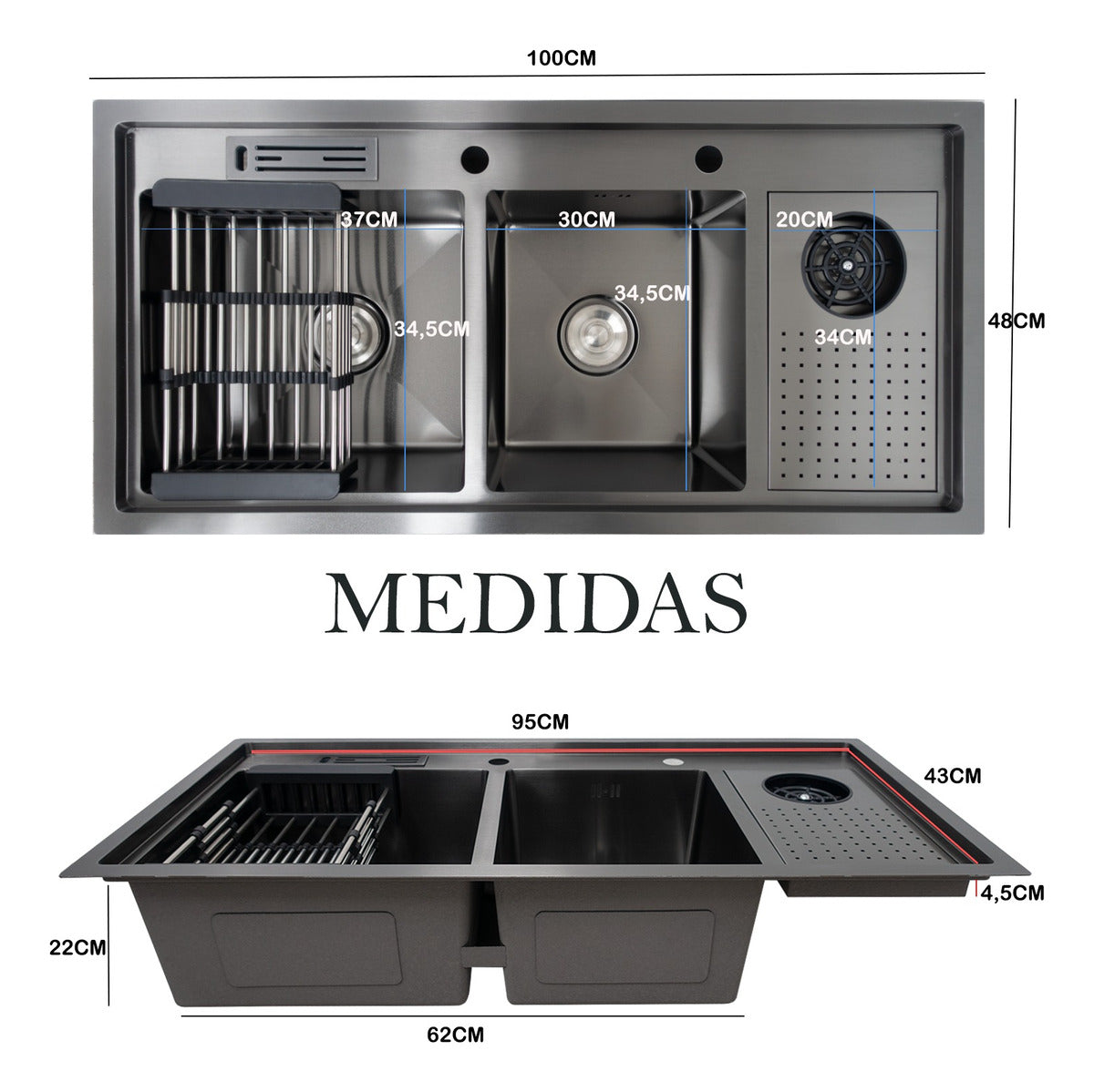 Lavaplatos Premium 100x48Cm Doble Con Lavavasos Y Escurridor
