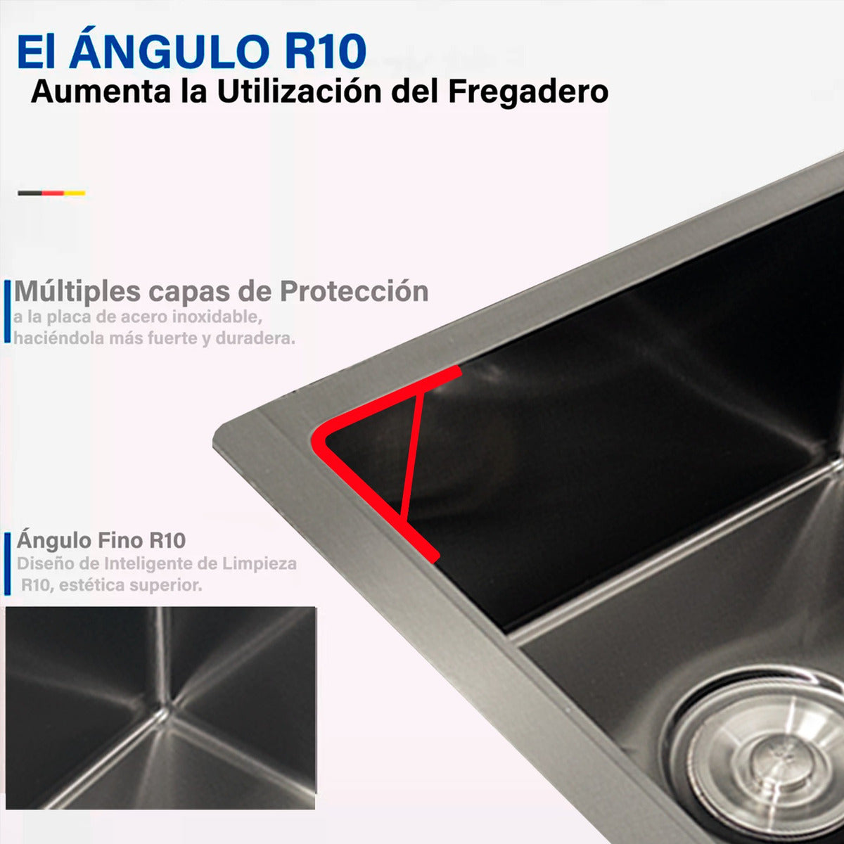 Este modelo cuenta con un sistema de doble compartimento, facilitando la tarea de lavar y enjuagar los utensilios de cocina. Incluye un escurridor, Grifo especial para lavar vasos, Kit de Desagüe Completo, lo que simplifica su uso diario. Además, su diseño Bajo mesada permite una integración perfecta en la mayoría de las cocinas.