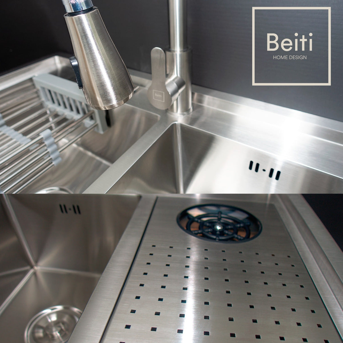 El lavaplatos moderno 100x48 Premium de la marca Beiti es la solución ideal para quienes buscan funcionalidad y estilo en su cocina. Con un diseño rectangular y un acabado cepillado, este lavaplatos de acero inoxidable no solo es resistente, sino que también aporta un toque contemporáneo a cualquier espacio. Su profundidad de 19 cm y su espesor de 2.5 mm garantizan durabilidad y un uso eficiente.