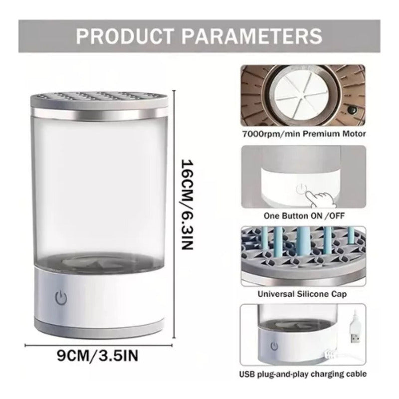 Tecnología avanzada: Utiliza un potente motor para girar y limpiar cada cerda, garantizando una limpieza profunda sin dañar las brochas.