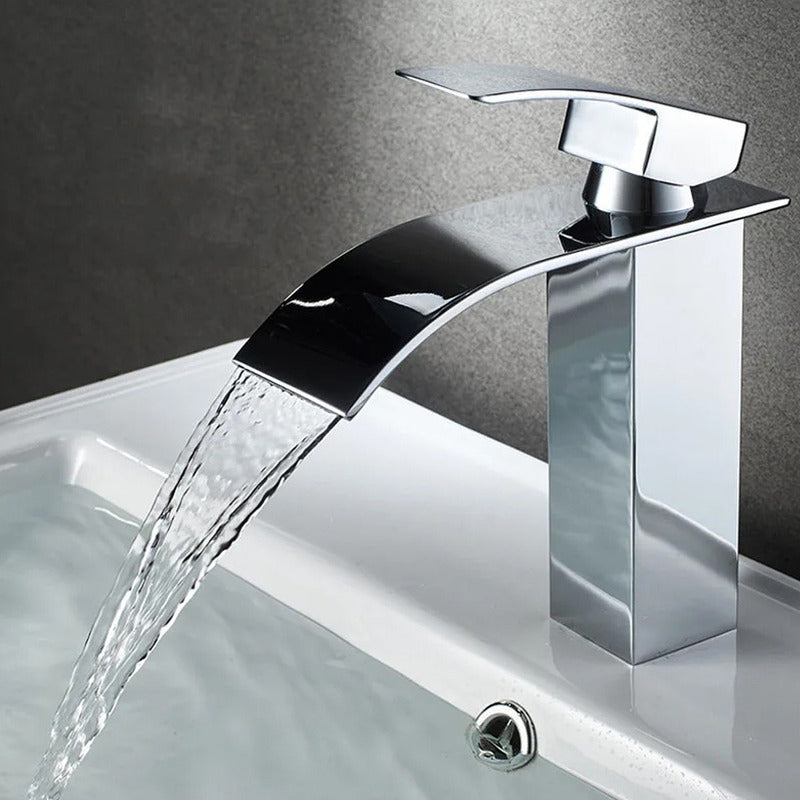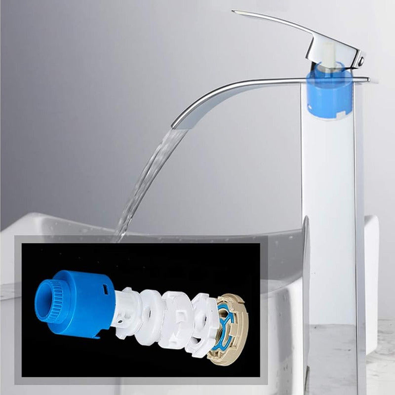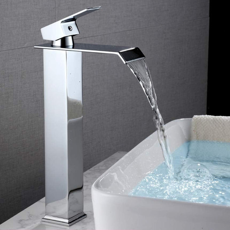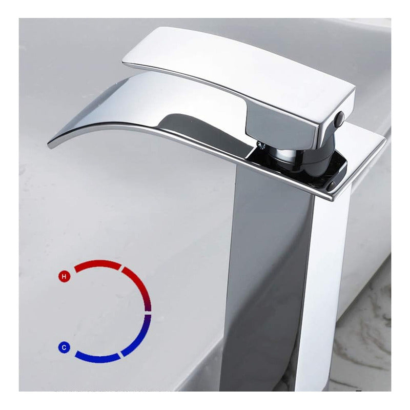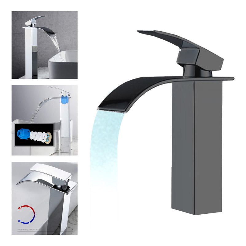 Llave grifo Premium tipo cascada para lavamanos, con apertura para agua fría o caliente y un diseño elegante y de lujo, es ideal para todo tipo de lavaplatos, hecho con materiales de alta calidad para mayor durabilidad, este grifo resalta de otros debido a su diseño con cuello largo de cascada plana.