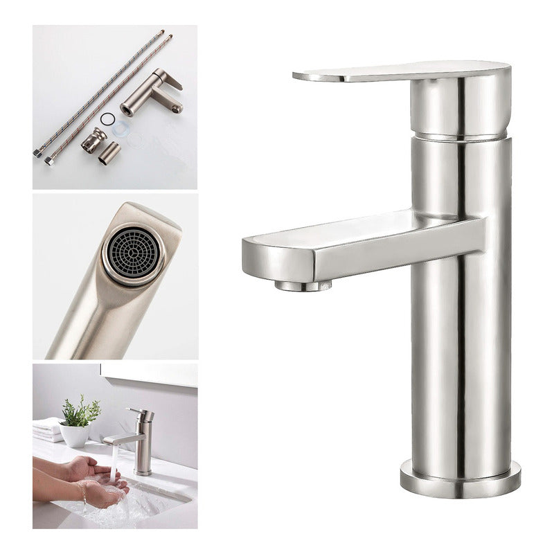 Llave Monomando Grifo Lavamanos Baño Clásica Acero Inoxidable Plateado