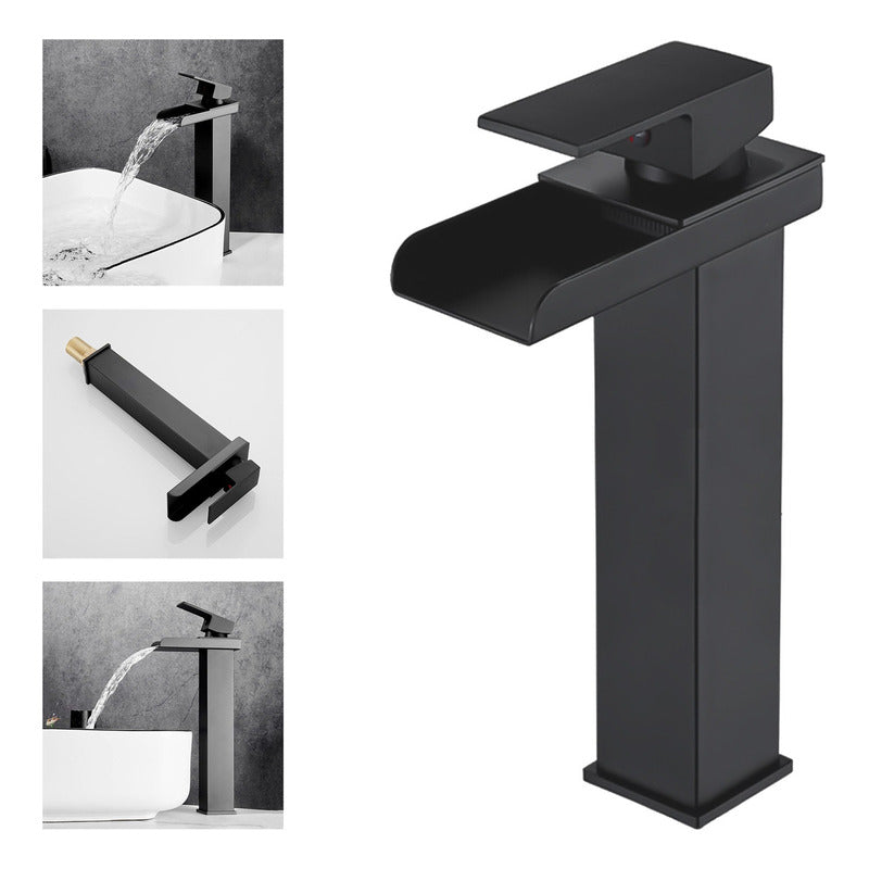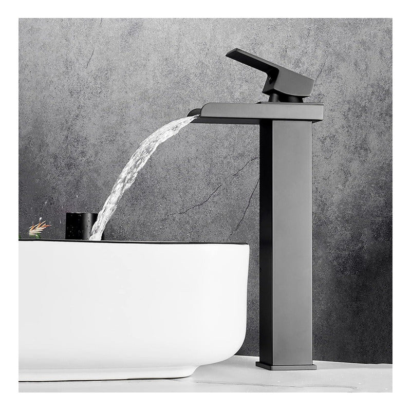 Llave Monomando Lavamanos Estilo Cascada Moderna Acero Negro