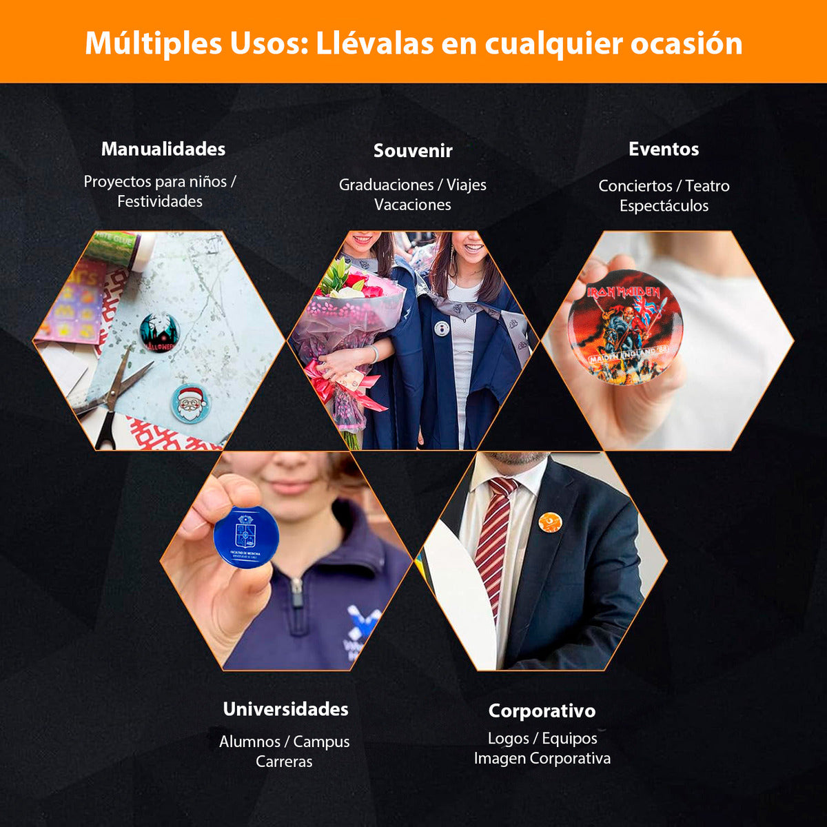 Con su sistema de matrices intercambiables de 58mm, esta máquina se adapta a múltiples necesidades creativas. Desde chapitas tradicionales hasta imanes, llaveros y abridores de botella, las posibilidades son infinitas. Perfecta para emprendedores que buscan diversificar su oferta, educadores que desean crear material didáctico personalizado, o empresas que necesitan elementos promocionales únicos.