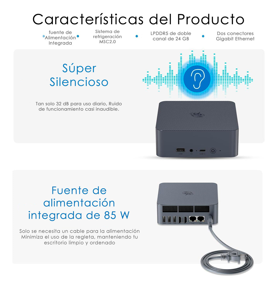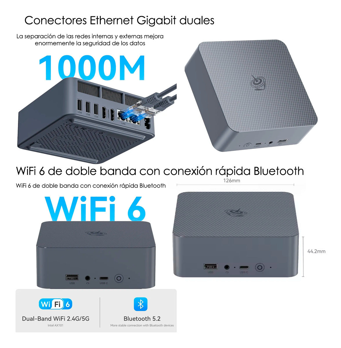 Con conectividad Dual LAN, garantiza múltiples opciones de conexión para mantener toda su red en funcionamiento sin inconvenientes. Esta Mini PC es la solución perfecta para quienes buscan potencia, eficiencia y un espacio de trabajo ordenado, aprovechando al máximo cada centímetro sin sacrificar el rendimiento.