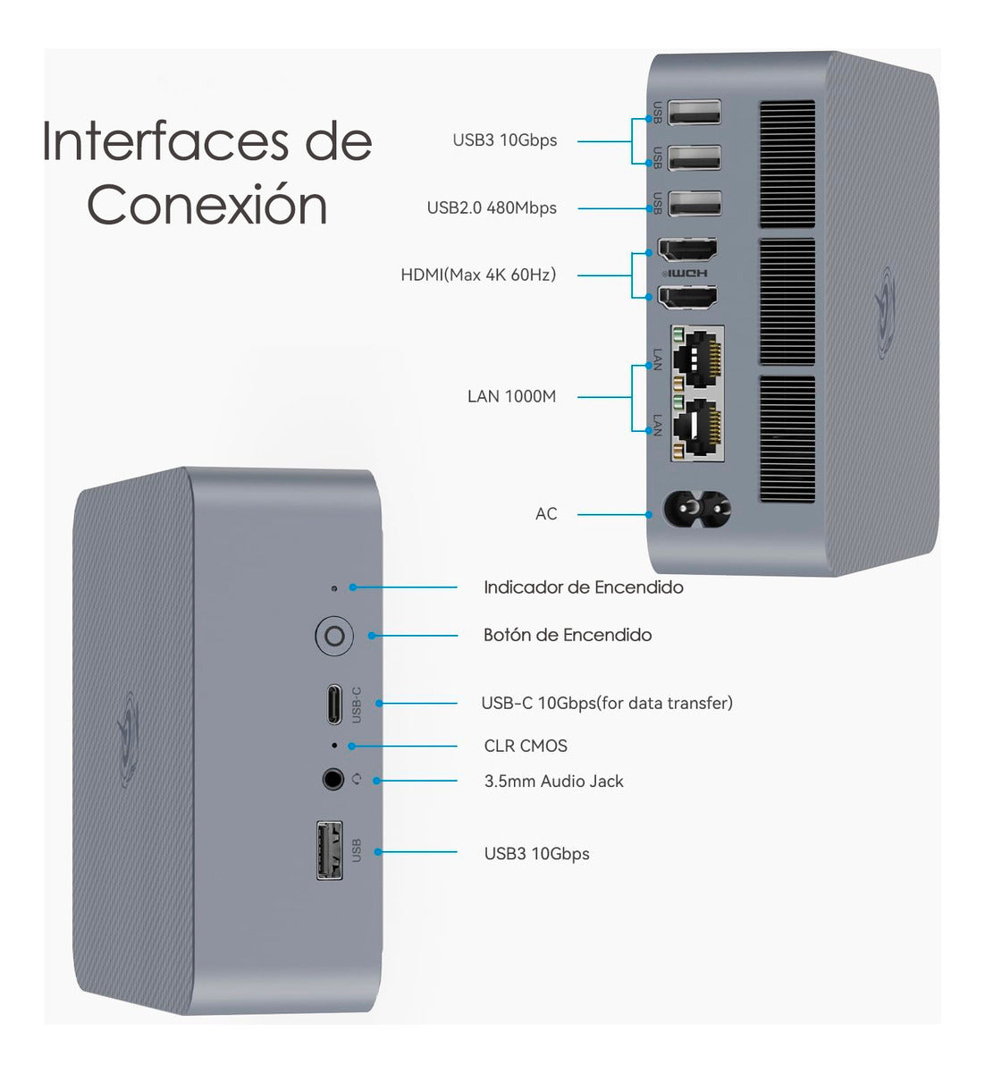 Aunque no está optimizada para tareas de gaming o inteligencia artificial, la Beelink EQi12 es perfecta para el uso diario, ya sea para trabajo, entretenimiento o navegación. Su diseño en color gris le confiere un toque moderno, haciéndola adecuada para cualquier entorno.