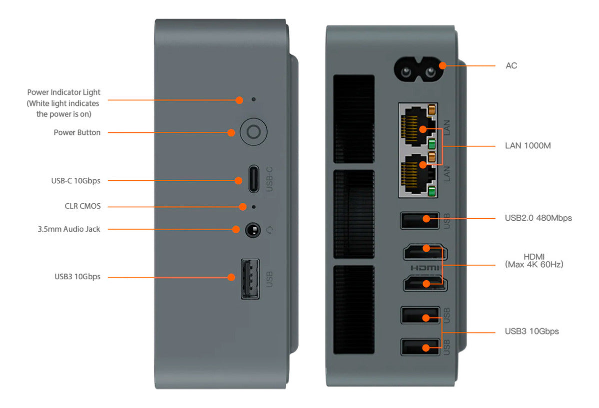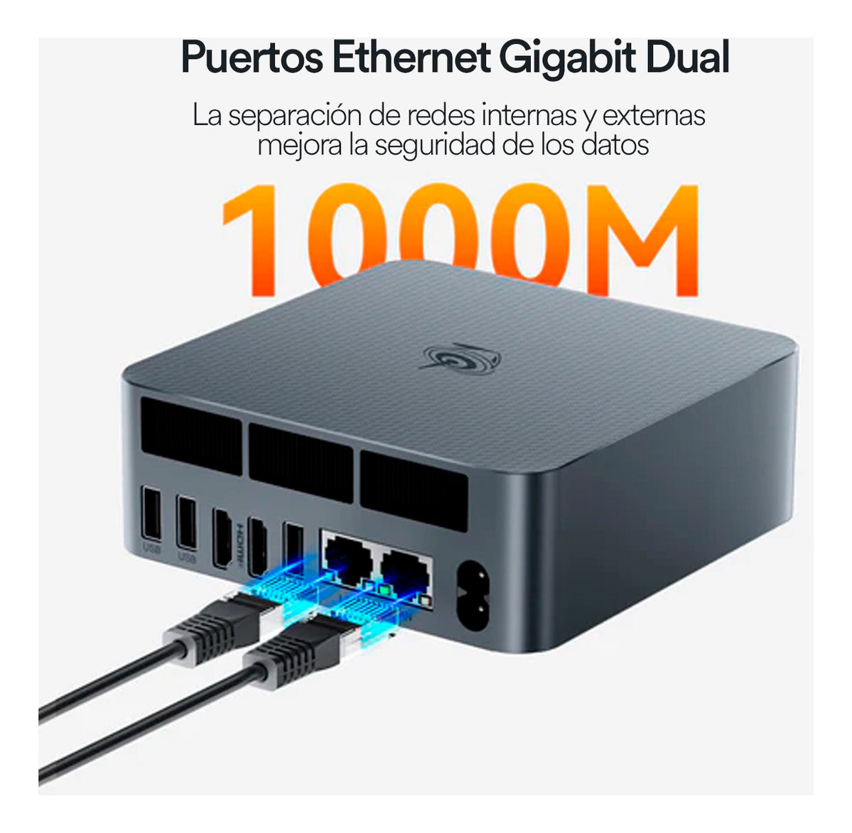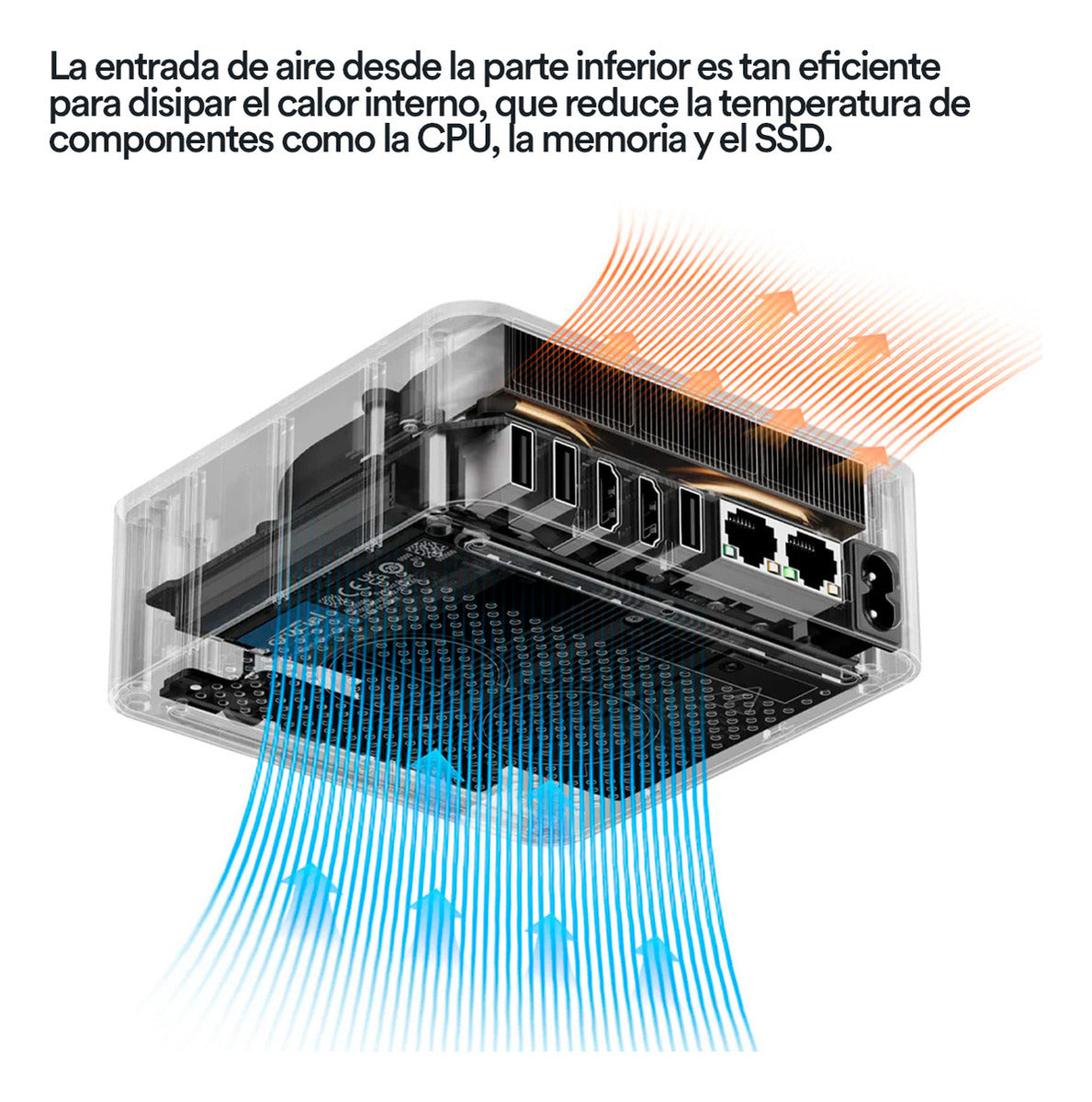 Este mini PC ultracompacto te permite ahorrar valioso espacio en tu escritorio sin renunciar ni un ápice de potencia. Su diseño incluye montaje VESA, lo que significa que puedes instalarlo discretamente detrás de tu monitor o montarlo en la pared para crear un entorno de trabajo completamente limpio y ordenado. Su construcción sólida con acabados modernos lo convierte en la elección ideal tanto para el hogar como para oficinas profesionales.