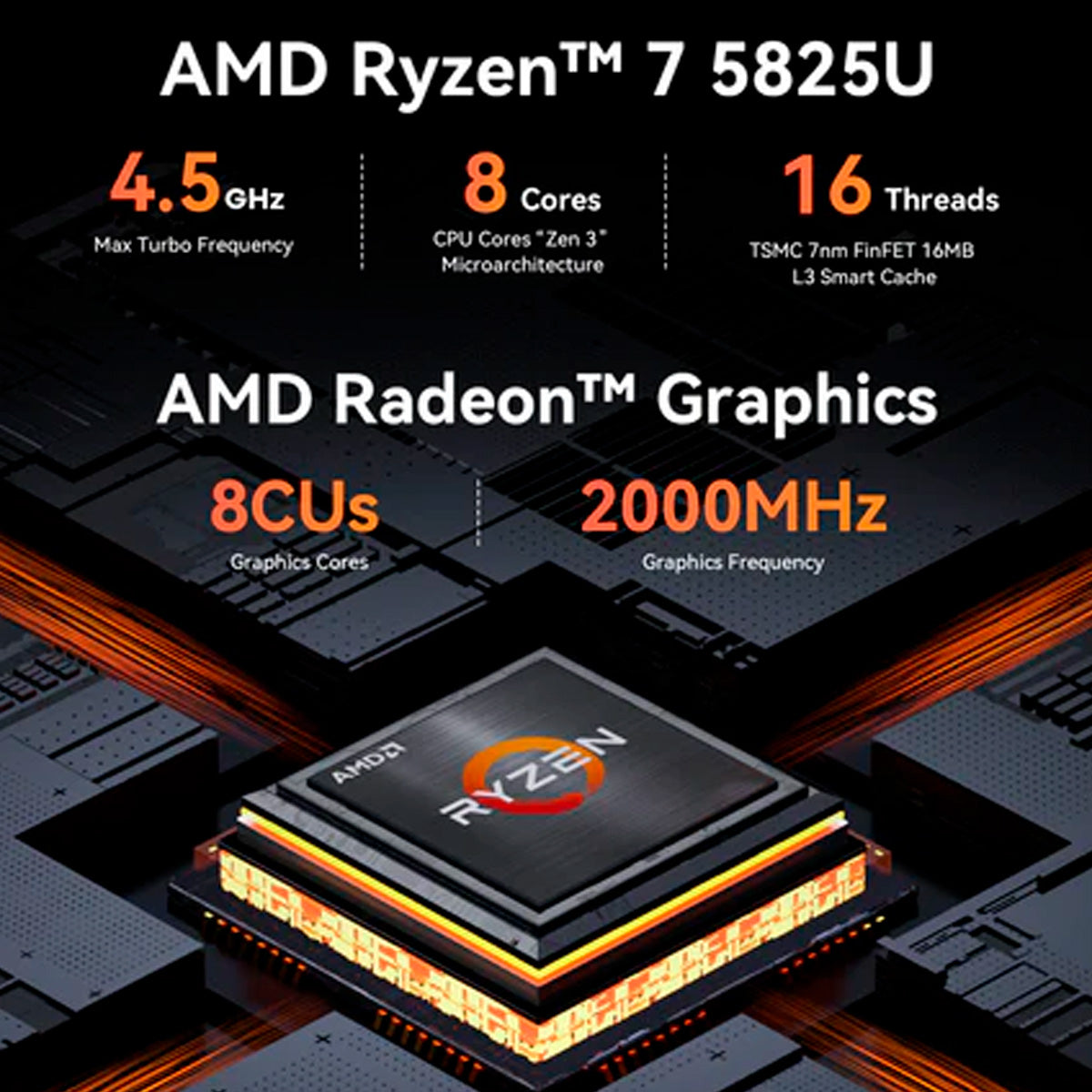 - AMD Ryzen 7 5825U - 8 núcleos / 16 hilos (hasta 4.5GHz)