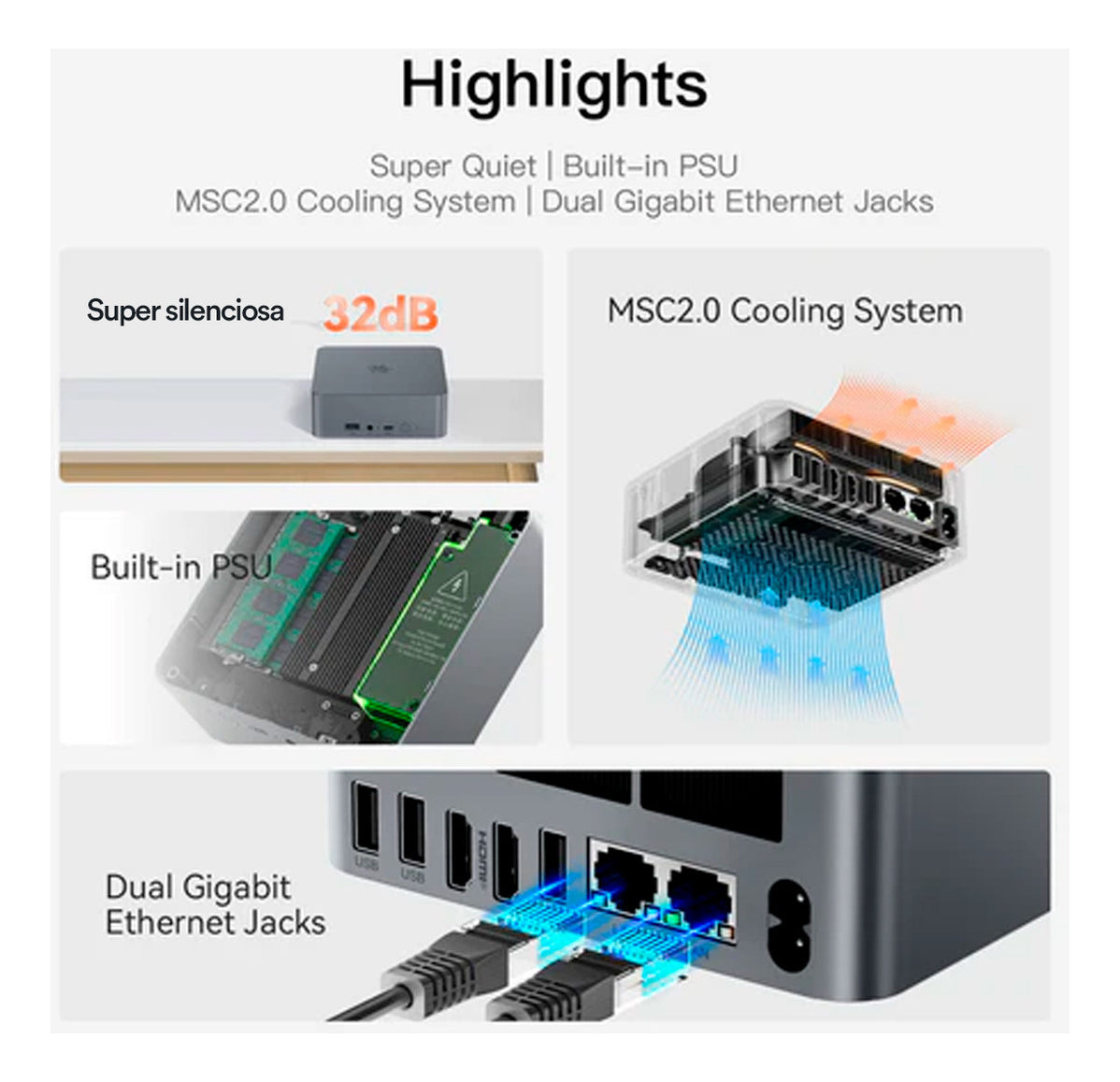 Este mini PC se adapta perfectamente a cualquier necesidad: desde teletrabajo y oficina con videoconferencias fluidas y gestión eficiente de documentos, hasta entretenimiento en casa con reproducción de streaming en 4K y navegación web sin límites. También es la herramienta perfecta para aprendizaje en línea, proporcionando la velocidad y eficiencia necesarias para clases virtuales y proyectos educativos.