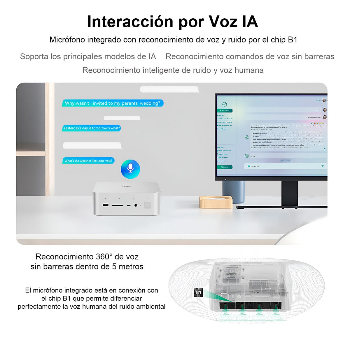 Una de las características más impresionantes del GTi14 Ultra es su sistema de interacción por voz impulsado por IA. El micrófono integrado puede detectar comandos de voz en un radio de 5 metros con reconocimiento omnidireccional de 360°, separando eficazmente las órdenes del ruido de fondo. Esto lo convierte en la herramienta perfecta para videoconferencias sin necesidad de levantarse del asiento. Los altavoces duales, potenciados por DSP y amplificador profesional, ofrecen un sonido envolvente con agudos brillantes, vocales realistas y detalles ricos que transforman cualquier contenido multimedia en una experiencia inmersiva.