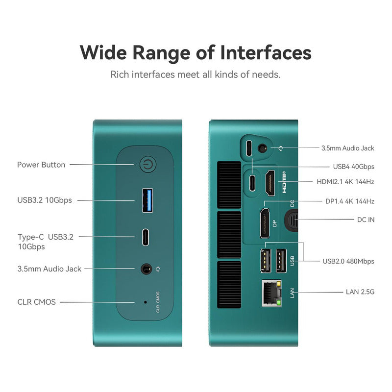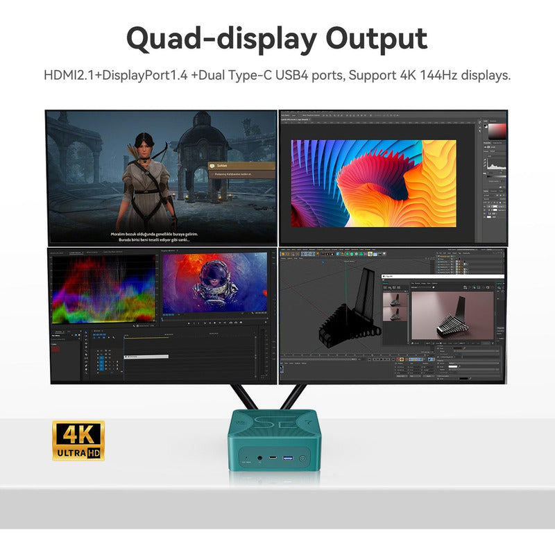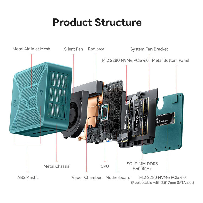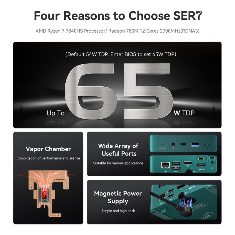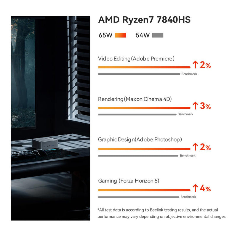 El miniordenador Beelink SER7 está impulsado por el potente procesador AMD 7840HS de la serie 7000, que ofrece un reloj base de 3.8 GHz y puede alcanzar hasta 5.1 GHz en modo de refuerzo. Con sus 8 núcleos y 16 subprocesos, el SER7 está diseñado para manejar de manera eficiente una amplia gama de tareas, desde juegos exigentes como CS