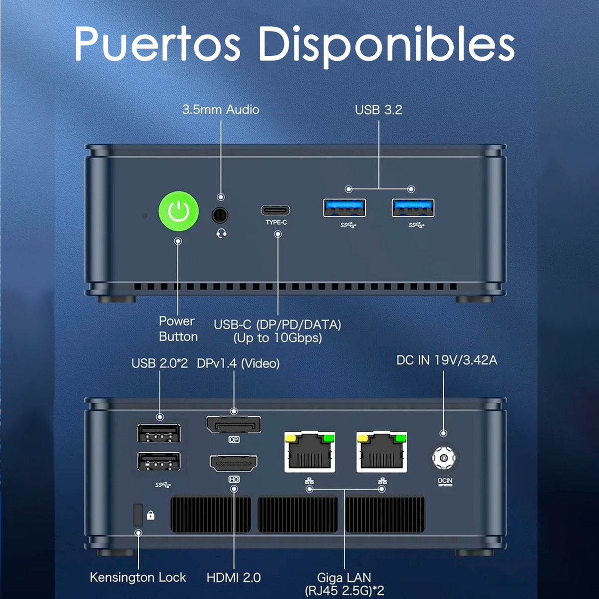 Con facilidad de conectividad, el M5 Plus incluye Bluetooth 5.2, WiFi 6 y múltiples puertos como HDMI 2.1 y USB 4.0, garantizando una experiencia de usuario moderna y versátil. Su diseño compacto, con dimensiones de 12.7 cm de ancho, 4.8 cm de altura y un peso de solo 528 g, facilita su colocación en cualquier espacio sin sacrificar el rendimiento.